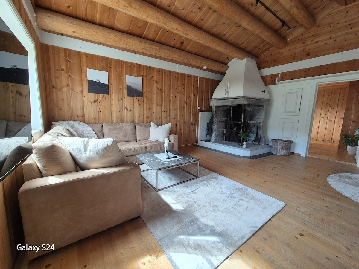 Maison en rondins avec salle de bain et cuisine récemment rénovées. Une chambre et un canapé-lit dans le salon, des places de couchage pour 4 personnes. Le salon est spacieux avec une bonne hauteur de plafond et une grande cheminée Avec nous à Skjåk, avec un emplacement au milieu de Jotunheimen, Breheimen et Reinheimen, vous avez la chance de vous détendre, de recharger les batteries et de profiter de la belle nature et des possibilités de randonnée en abondance, - à la fois hautes et basses. La ville du parc national de Lom est notre voisine à l'est, tandis que la pittoresque Stryn est notre voisine à l'ouest - il y a donc beaucoup d'occasions pour des expériences variées !