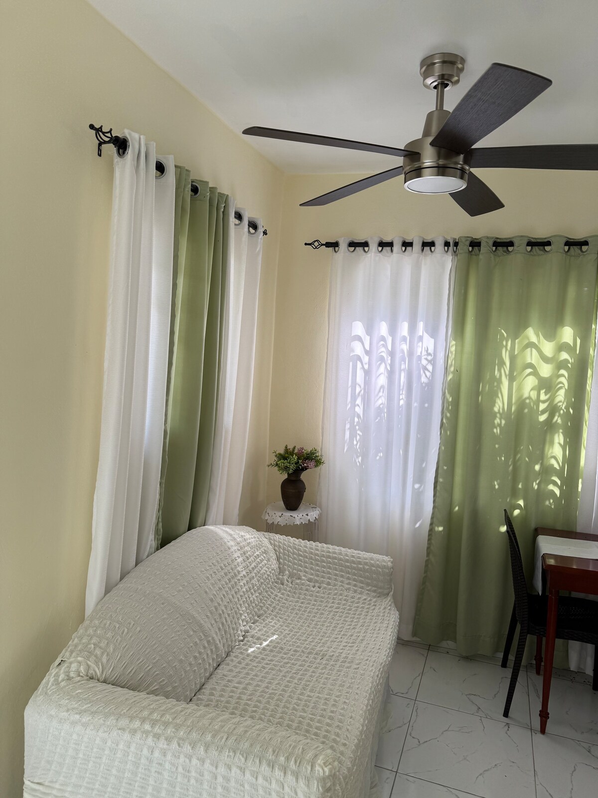 Relax with the whole family at this peaceful place to stay. The apartment has a water heater and a battery inverter in case there is no light, cable and internet. The two bedrooms include air conditioners and an open terrace where you can enjoy the view of Bayaguana. The River Comatillo is 10 minutes away, and Bayaguana downtown is 5 min.