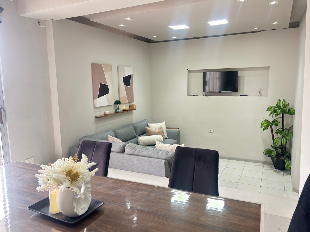 Logement complet idéal pour les familles ou les groupes, situé dans la partie supérieure de la maison avec accès indépendant et intimité totale. Il dispose de deux chambres, d'un salon avec canapé-lit, d'une kitchenette équipée, de la climatisation et d'espaces confortables pour se reposer. Son design chaleureux avec de hauts plafonds et de la lumière naturelle crée une ambiance cosy et élégante. Parfait pour profiter de Monterrey avec confort, tranquillité et espace.