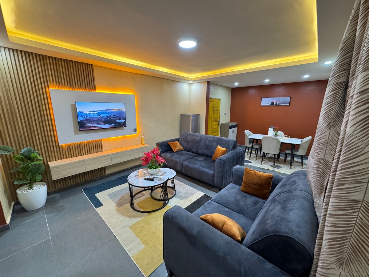 Profitez du calme du front de mer dans cet élégant appartement de 2 chambres rue Gbaga à Lomé, idéal pour voyageurs d'affaires, couples ou familles. Comprend climatisation, Wi-Fi haut débit, entrée privée, parking gratuit, cuisine équipée, espace de travail, TV, lave-linge et chambres spacieuses avec draps coton. à minutes de la plage, restaurants, salles de sport et marchés, et seulement 14 minutes de l'aéroport.