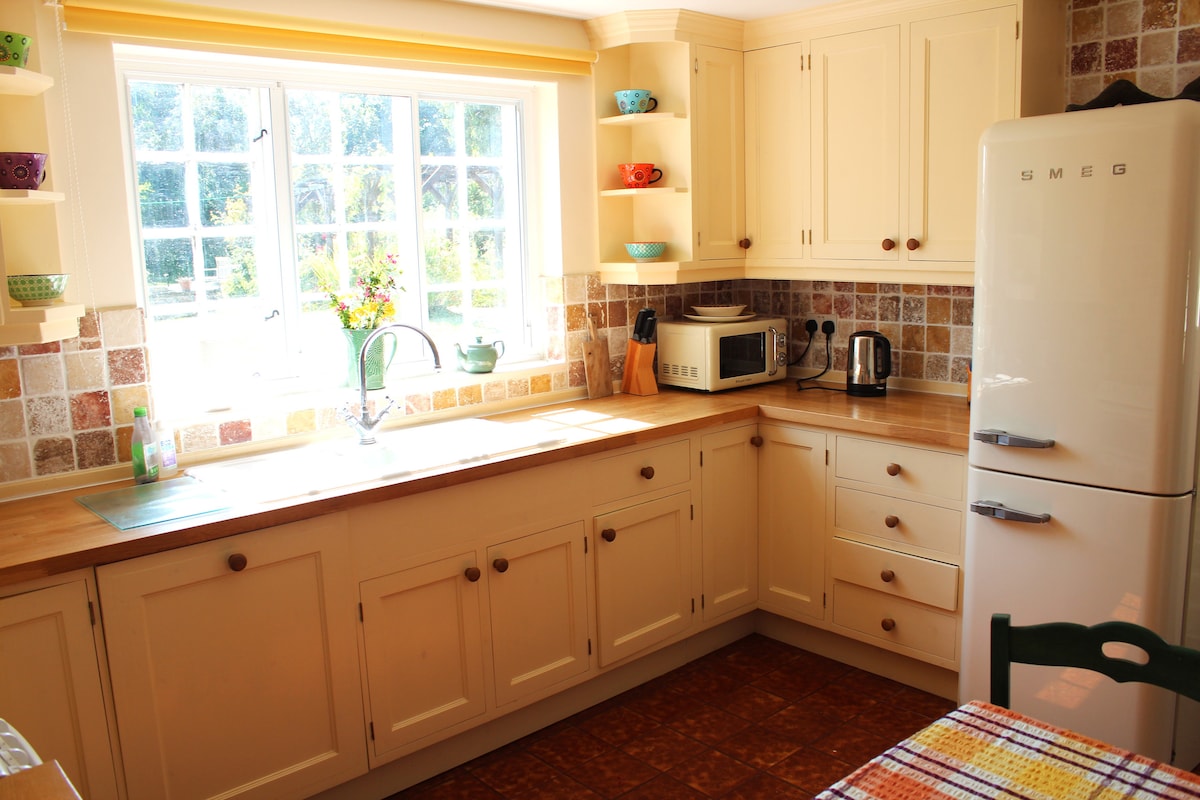 Suite récemment convertie dans une maison située au cœur d'un village pittoresque du Dorset. Accès privé par votre propre porte d'entrée et mise à l'écart de la maison principale pour assurer l'intimité. Espace privé à l'extérieur pour votre usage ou vous pouvez explorer les vastes jardins et bois. Les équipements de cuisine sont limités, mais un réfrigérateur, un four à micro-ondes, une plaque de cuisson électrique, un grille-pain et une bouilloire sont fournis. De la bonne nourriture est servie dans le pub du village à quelques minutes à pied. La ville de Dorchester est à 10 minutes en voiture.