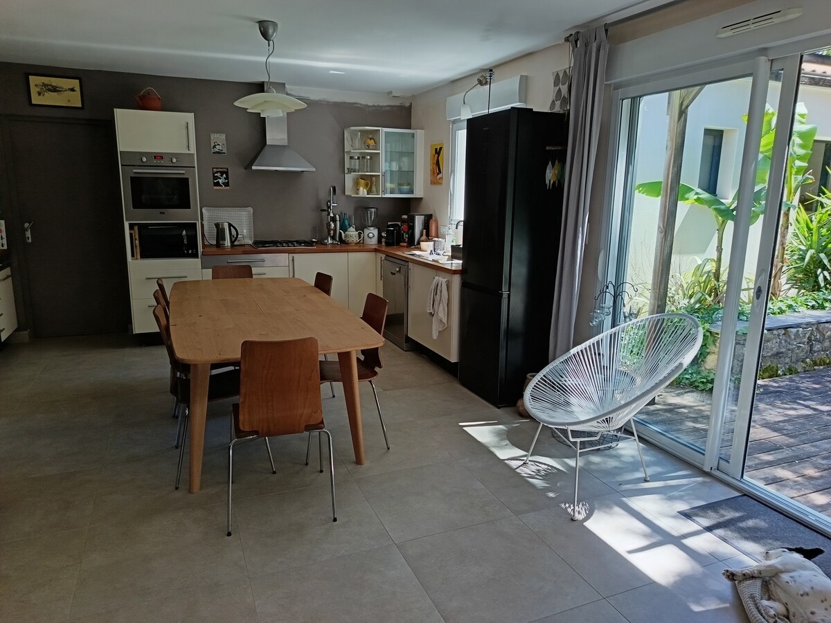 Bienvenue à la maison de Julie ! Un séjour ressourcement en bord de mer, accessible en train (1h de Nantes) et sans nécessité de voiture sur place, pour encore mieux déconnecter… Nous vous accueillons au rez de chaussée d'une demeure de caractère du 17ème siècle, située à 10mn à pied de tout : l'océan, les marchés, les commerces, les restaurants et terrasses… Pierres, bois, matières naturelles et couleurs choisies vous accompagneront pour un décor cocooning à souhait.