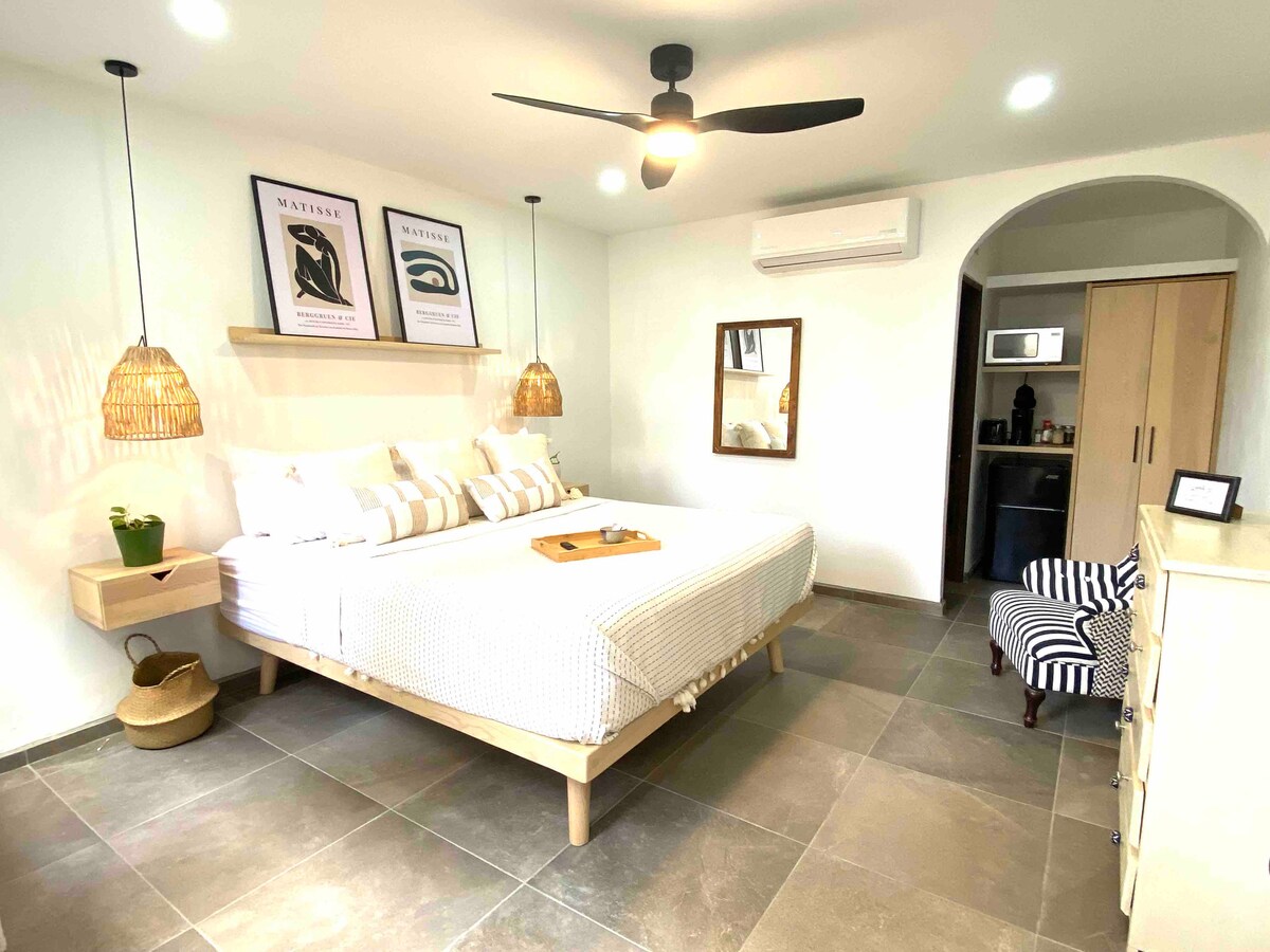 Ayez votre goût incroyable du paradis à Loreto80 – CACTUS, c'est un magnifique studio au design de plage bohème au cœur de Loreto. Il est situé dans la rue principale du centre-ville (rue calme), à côté de notre Mission de Loreto et à seulement 3 pâtés de maisons de la plage. ⚠️ Avis de stationnement : en raison des réparations en cours dans les rues de la ville, le stationnement directement dans la propriété n'est pas disponible. Il peut y avoir un stationnement limité dans la rue à environ un pâté de maisons, en fonction des disponibilités. Nous disposons d'UNE FIBRE OPTIQUE