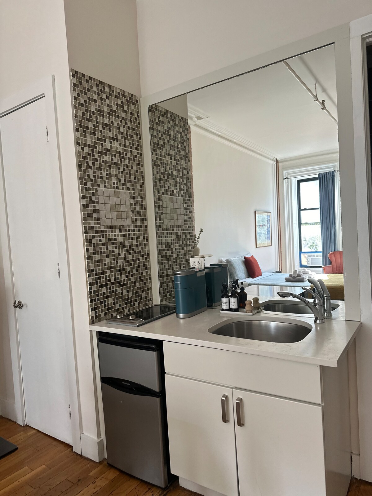 Découvrez l'ambiance tranquille et chic de ce studio récemment rénové à South Slope, au sud de Park Slope. Un lit Queen Size et un canapé-lit, pouvant accueillir jusqu'à quatre (4) personnes. L'appartement est entièrement équipé avec des équipements modernes tels qu'une télévision intelligente, un système de climatisation split, un lave-linge/sèche-linge et une cuisine élégante. Le design charmant de l'appartement comprend des murs en briques apparentes, de hauts plafonds et un quartier qui complète parfaitement l'espace, évoquant l'essence du vieux Brooklyn.