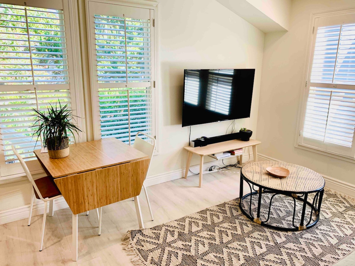 Retraite privée romantique avec terrasse ensoleillée et verdure luxuriante Espace de vie intérieur/extérieur, plafonds voûtés, vue sur le jardin Cuisine gastronomique, foyer au gaz, douche à l'italienne Porte-serviettes chauffant, aromathérapie et thérapie sonore Climatisation et chauffage contrôlés par Nest (pas de conduits partagés) Filtration de l'air et nettoyage écologique Arrivée et départ autonomes, Wi-Fi rapide Idéal pour les couples, les voyageurs en solo et les voyages d'affaires