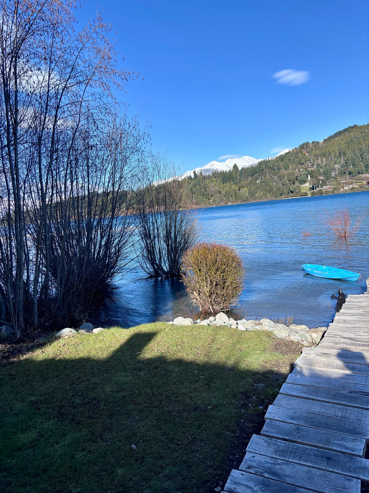 Ce beau loft est situé dans la péninsule Saint-Pierre, sur le lac Nahuel Huapi, à seulement 3 km de l'avenue Bustillo au 21 km. Profitez d'une situation privilégiée avec votre propre plage privée et entourée de superbes montagnes, de fleurs et d'arbres, y compris les emblématiques de la côte. De plus, sa baie protégée offre une atmosphère calme et sereine pour se détendre. Pendant l'été, vous pourrez profiter du soleil tard le soir.