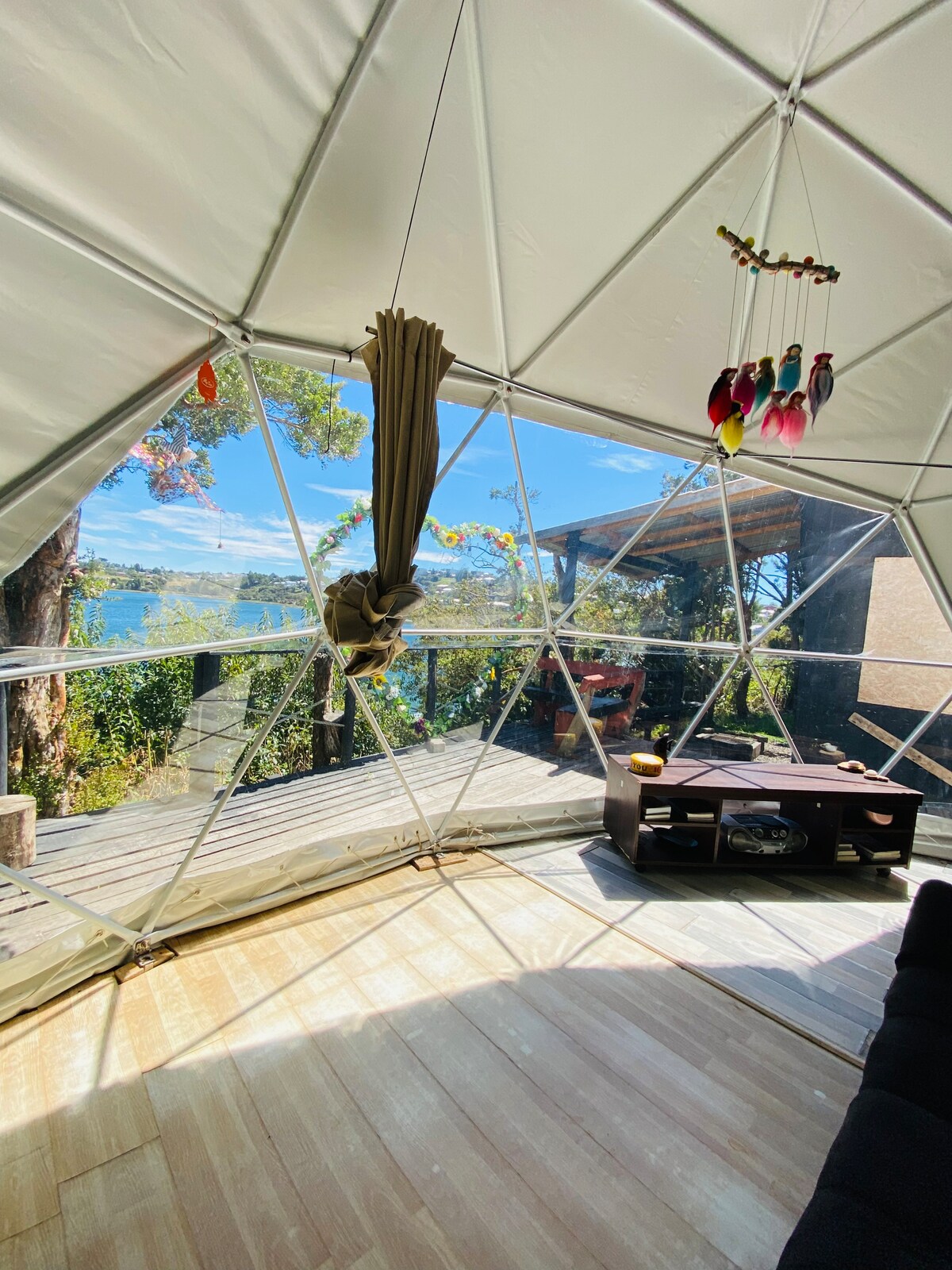 Profitez de la tranquillité de Chiloé à seulement 300 m du sanctuaire de la nature Bahía Curaco de Vélez, entouré d'oiseaux et de nature. Le dôme offre un espace confortable pour 2 personnes, idéal pour les couples qui cherchent à se déconnecter, se détendre et explorer la beauté du bord de mer et de ses environs.