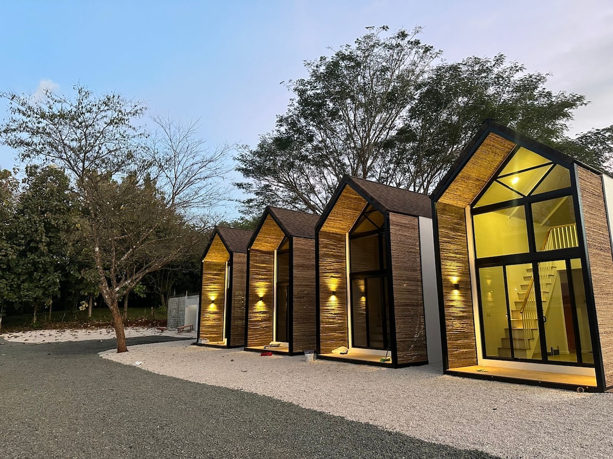 Architecture unique en forme de diamant avec de superbes fenêtres triangulaires qui laissent entrer la lumière naturelle toute la journée. Cuisine entièrement équipée — tout ce dont vous avez besoin pour cuisiner vos propres repas. Un lit King Size dans le loft à l'étage et un lit Queen Size confortable en bas. Belle salle de bain en bambou avec toilettes séparées et douche extérieure sous le ciel. Climatisation pour vous garder au frais. Entouré par la nature et conçu pour la détente. Visitez notre restaurant Mycelium sur place où nous servons de délicieux brunch, déjeuner, dîner et gelato