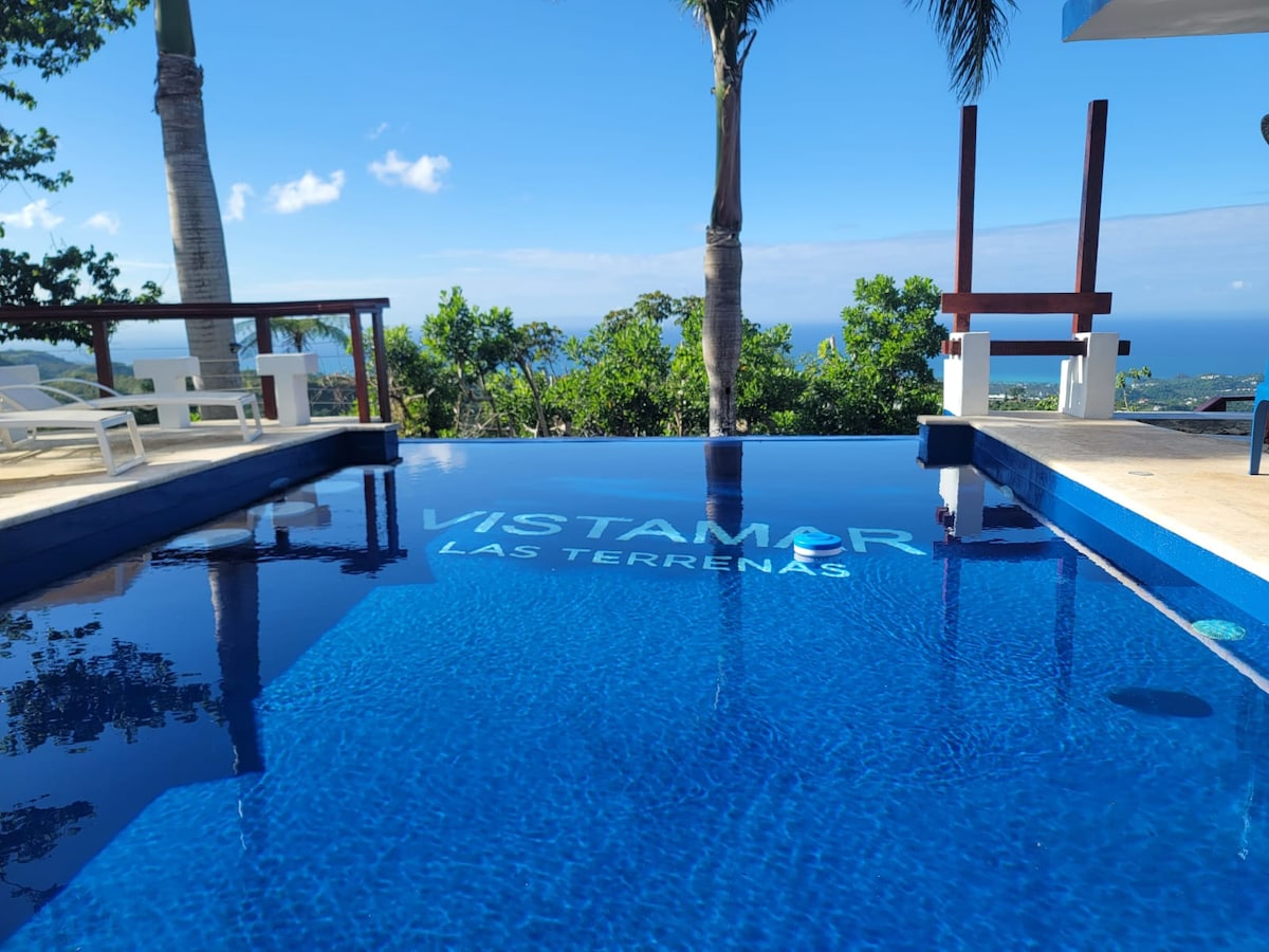 A spectacular WoW villa, in the mountains, overlooking Playa Coson. ***This is NOT a party villa. We have neighbors here. In the daytime low-level music and after 10 pm NO Music. A very spacious and comfortable, private villa, with all comfort. And a huge pool, a swim-up bar, and an infinity pool. The villa is 8 minutes distance from center of town, where you will have shopping facilities, restaurants, and bars. In the mountains. 4x4 car is necessary Electricity villa NOT included.