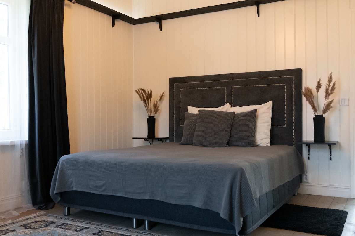 Haute qualité dans une maison du XVIIIe siècle dont l'âme unique est bien préservée. Parfait pour un week-end privé ou des vacances proches de la nature. Le salon est de 180 m2, récemment rénové avec une cuisine entièrement équipée, également un nepresso pour votre café du matin ! La maison est décorée dans un style champêtre moderne épicé d'influences asiatiques. Grands espaces de vie et jardin avec lilas et barbecue. La forêt est à distance de marche. La zone de baignade la plus proche est Välje au lac Virestad. À 15 km d'Älmhult et du musée IKEA. À 50 km de Växjö et à 60 km de Glasriket.