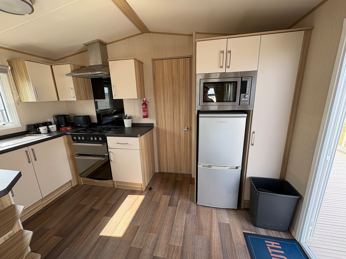 Situé à proximité du port de Lossiemouth, cet appartement bénéficie d'une vue imprenable sur East Beach. Observation des dauphins possible ! Le salon et la chambre bénéficient d'une situation à l'avant de la propriété, vous pourrez donc profiter de superbes levers de soleil et de vues sur la plage depuis le premier étage surélevé. La chambre dispose d'un lit King Size et d'un lit simple gigogne qui conviendrait à un petit. Chauffage au gaz et un beau poêle à bois qui vous réchauffera rapidement. Une cuisine entièrement équipée qui comprend un lave-vaisselle à ligne mince.