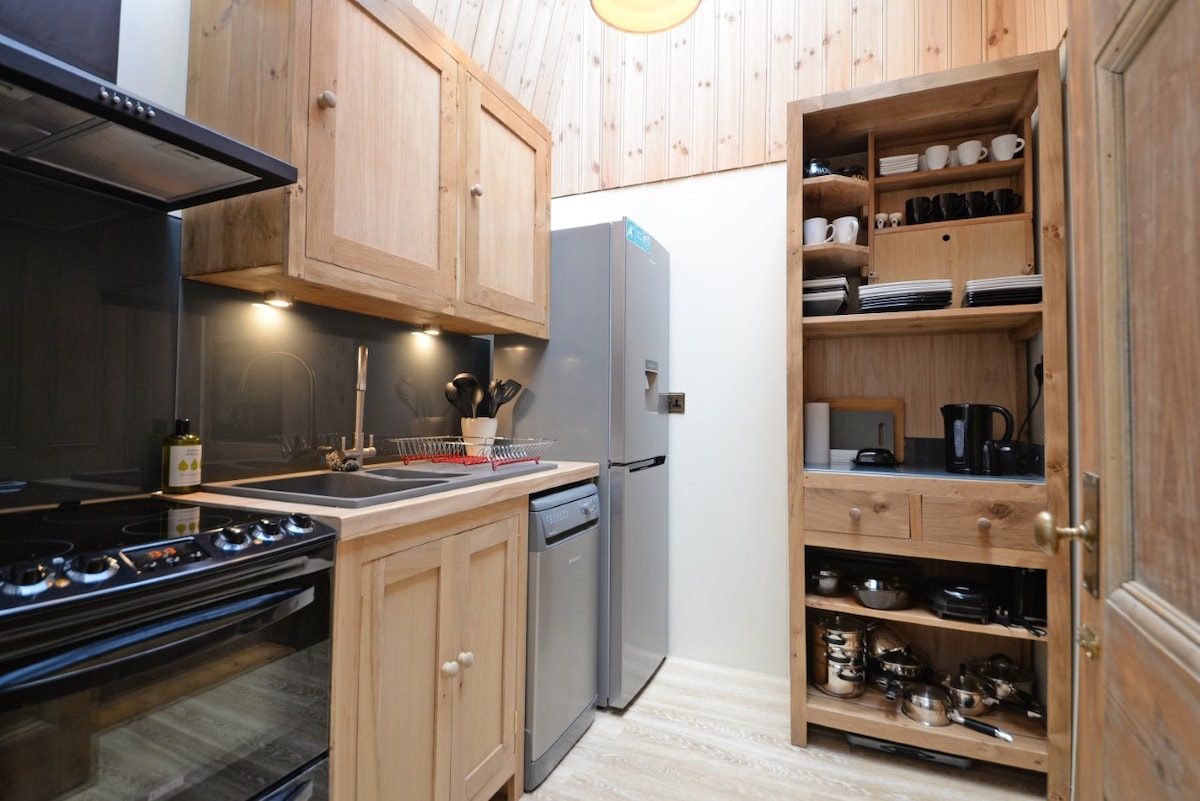 Bienvenue dans notre chalet de style chalet de ski d'une chambre niché dans la pittoresque campagne de Pendle dans le Lancashire ! Cette charmante retraite offre un mélange parfait de charme rustique et d'équipements modernes, promettant une escapade mémorable pour les couples ou les voyageurs en solo. Entrez et soyez accueillis par l'ambiance chaleureuse du feu ouvert, idéal pour se blottir après une journée d'aventures en plein air. Pour une relaxation ultime, profitez du sauna ou détendez-vous dans le jacuzzi bouillonnant sous le ciel étoilé de la nuit.