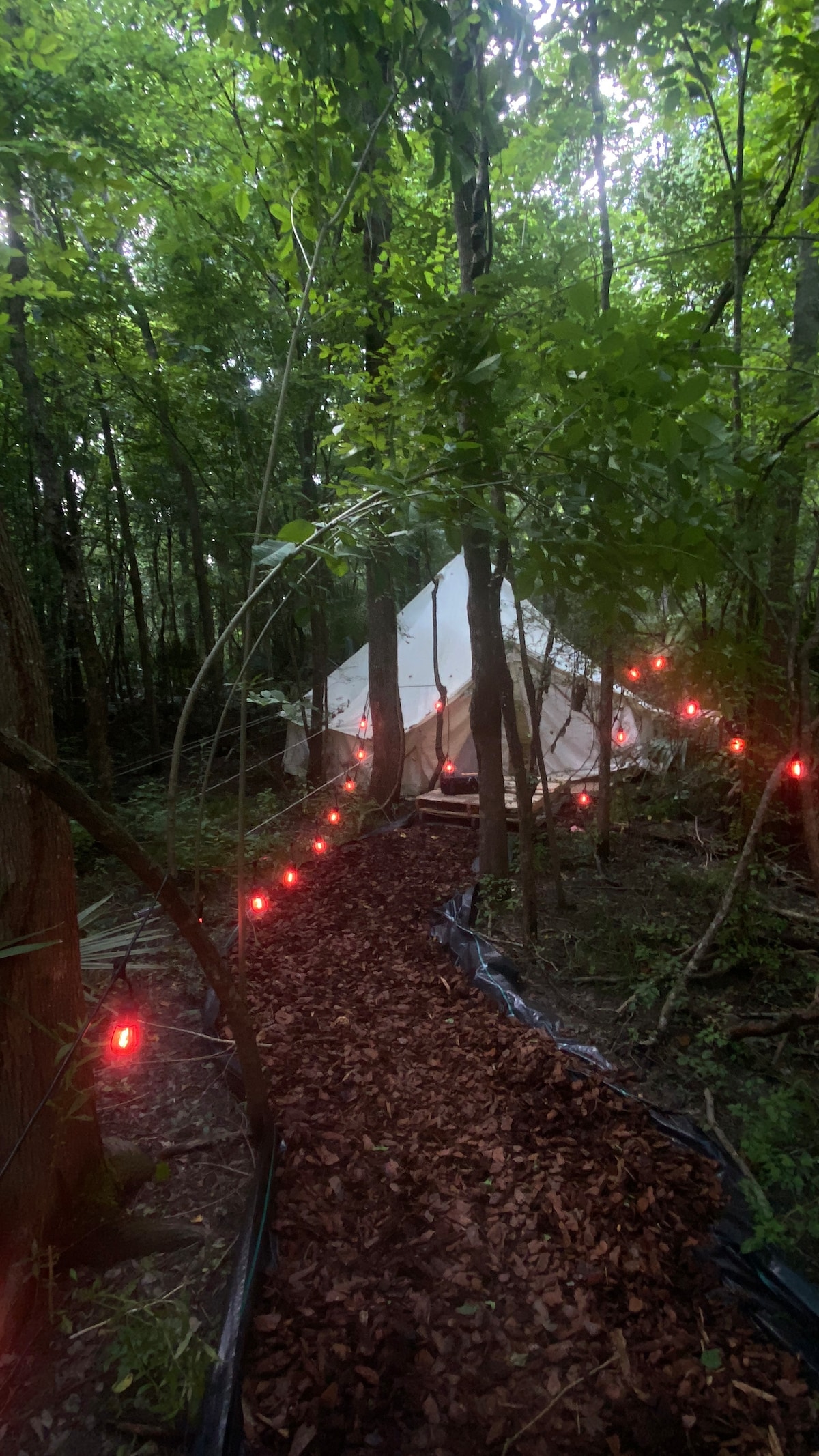 Profitez d'une expérience inoubliable de glamping avec climatiseur au sanctuaire Blanche-Neige ! À quelques minutes de l'I-10, cette oasis fermée dans les marais est un sanctuaire enregistré pour les pollinisateurs, les animaux de la ferme et la faune. Soyez accueilli par nos chevaux et notre cochon, et profitez de randonnées à travers la propriété de 24 acres accompagné de notre troupeau de chèvres amicales. Ou nagez et faites du kayak dans nos 6 acres d'étangs. 2 matelas jumeaux en mousse à mémoire de forme Tea Tree. Toutes les tentes sont à environ 3 minutes à pied de la salle de bain.