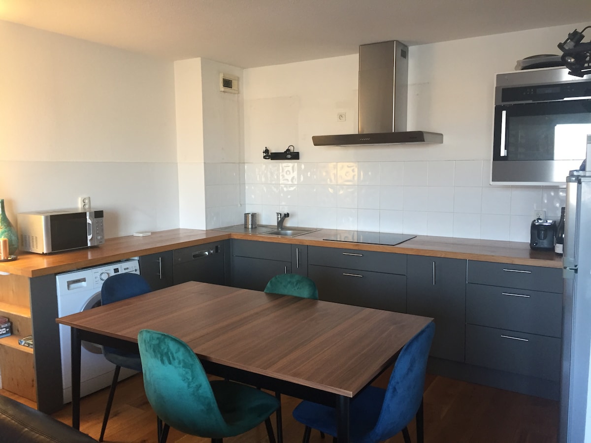 Tout confort, 3 vraies chambres, salon-cuisine, loggia, douche italienne, wc. Garage pour moto. Parking Public (150 m) et gratuit dans la rue à proximité immédiate. 3 climatisations mobiles , machine à laver, lave vaisselle, réfrigérateur, congélateur, four (plancha-grill), grille pain, café Nespresso, Apple / Android TV, Freebox Fibre. A 10 minutes à pied des halles, de la gare, du cadre royal, vue sur le mont Saint Clair. Idéal pour découvrir Sète pour un WE en amoureux ou en famille.