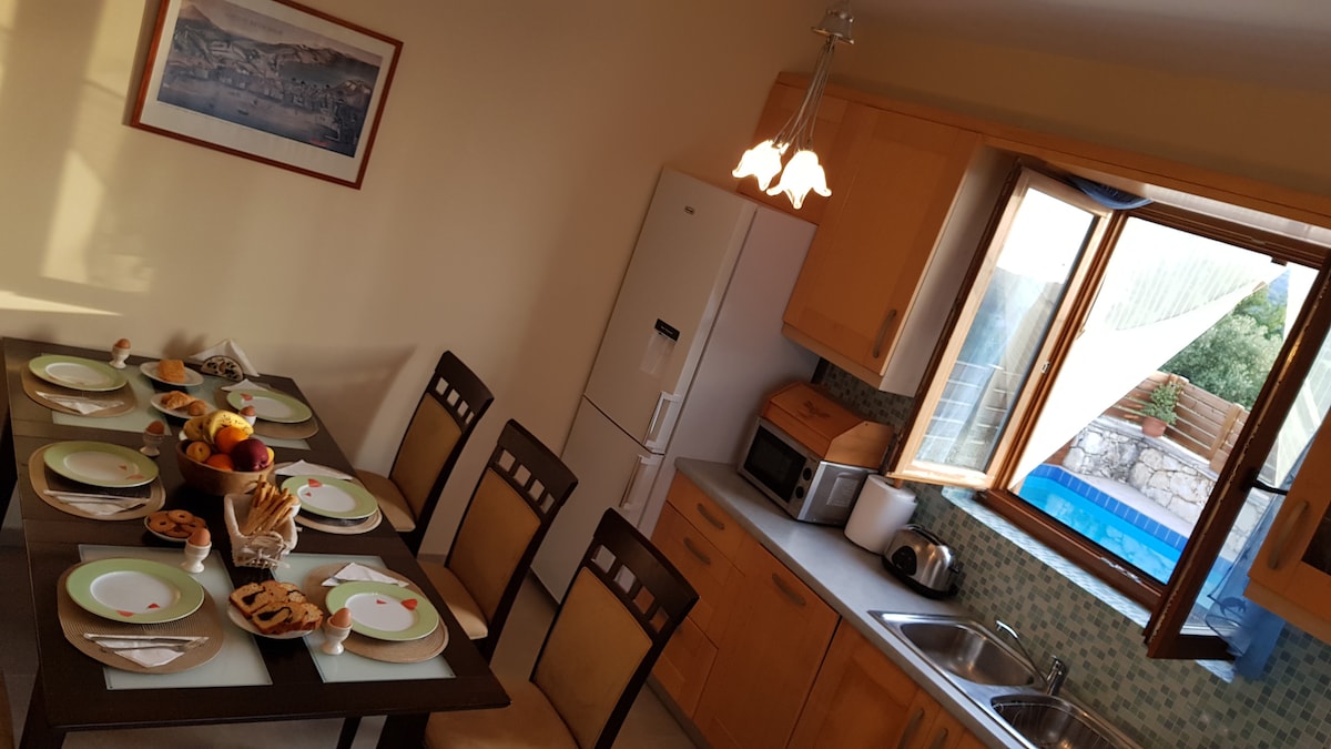 Entourée d'oliviers et avec une vue panoramique à couper le souffle, cette maison à énergie solaire ne cessera de vous surprendre ! La cuisine et le séjour ne sont séparés par aucun mur, ce qui crée un environnement ouvert et confortable. Nous cultivons nos aliments de manière biologique et nous avons 8 poulets et 2 chèvres, qui nous fournissent du lait frais et des œufs tous les jours. Alors ne perdez pas votre temps dans des stations bondées et des appartements ennuyeux. Venez séjourner chez nous, rencontrer nos charmantes chèvres et vivre une expérience nouvelle !