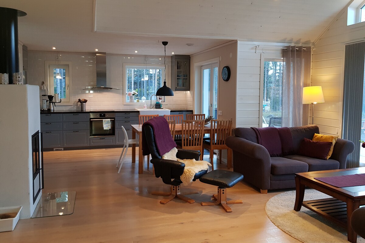 Bienvenue dans notre cabane ! À seulement 20 min de Gällivare et 25 min de la station de ski Dundret. Nous venons de terminer la construction de notre cabane il y a un an, donc tout est neuf. (Et nous avons encore un peu de ceci et de cela à faire). C'est un endroit calme, à la campagne, dans un petit village. Quartier agréable et très sûr. Facile à trouver. Cuisine/salon, salle de bains et 3 chambres en bas. 1 chambre et 1 grande chambre à l'étage. Nous nous attendons à ce que vous nettoyiez la maison avant de partir ou que vous payiez des frais de ménage de 1 200 sek.