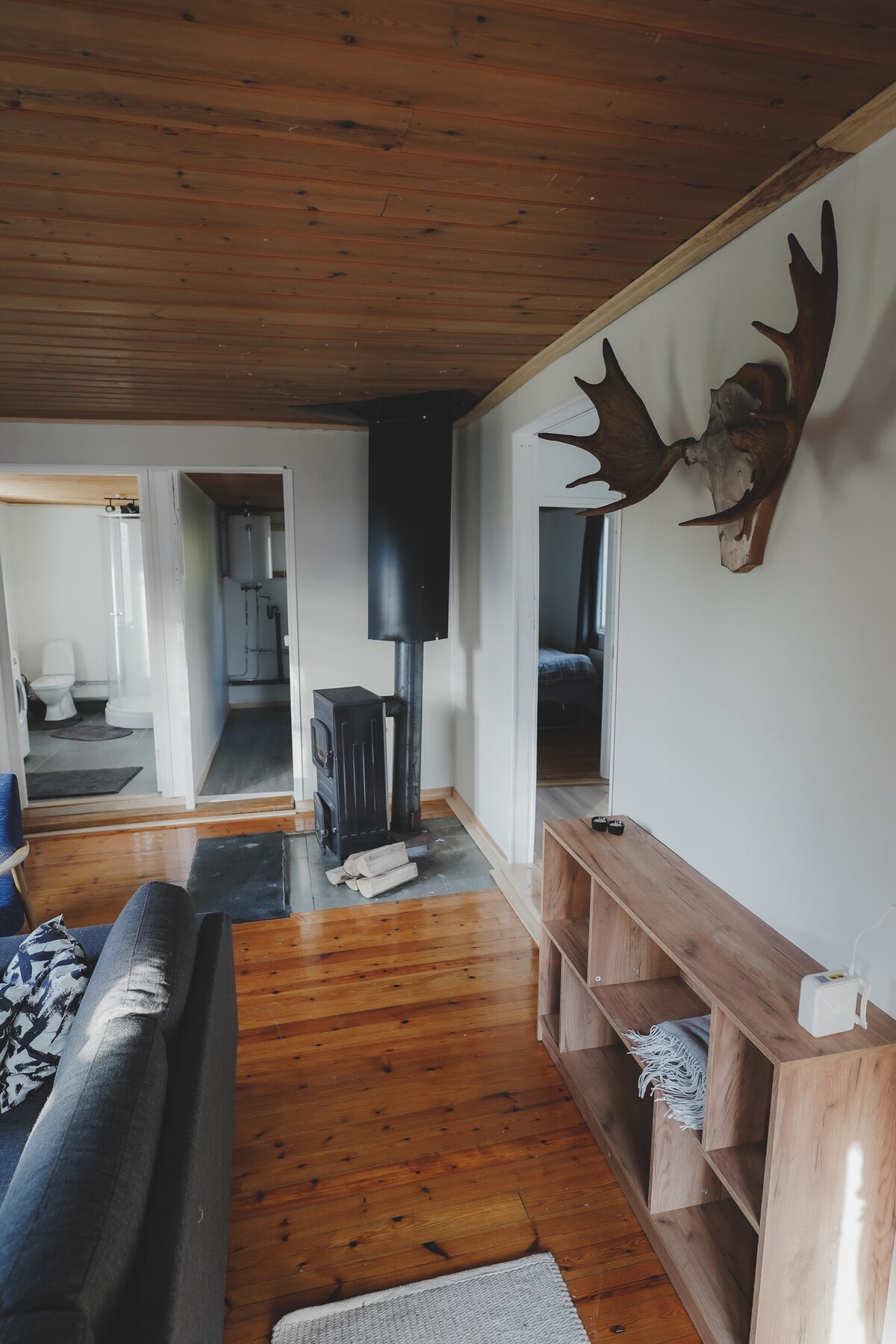 Nouvelle maison de vacances idéalement située au bord du lac sans voisins proches, mais à proximité du centre-ville et des services. Admirez les chutes d'Olos et de Pallas depuis les fenêtres paysagères. Alors que la soirée s'assombrit, profitez de la splendeur de la cheminée et des lumières dansantes aurores boréales. Détendez-vous dans la cour en écoutant le ruisseau ou pagayez sur le lac sous le soleil de minuit. Ici, vous pouvez respirer l'air le plus propre au monde. Les sentiers de ski de fond et d'été sont accessibles depuis la cour. Bienvenue à Tunturi-Lapland. La propreté et le calme sont le meilleur luxe.
