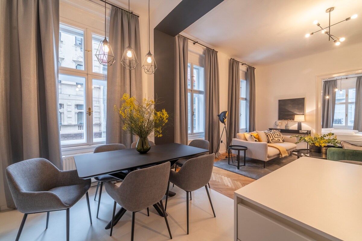 Deux appartements nouvellement aménagés et interconnectés, 130 m2, au cœur du centre-ville, en face de l'Académie des Beaux-Arts/Semper Depot, à quelques minutes à pied de Mariahilfer Strasse, Secession, Naschmarkt, TU et State Opera. Situés sur deux étages, les appartements peuvent accueillir confortablement jusqu'à 8 personnes. Chaque appartement a sa propre personnalité unique ; l'un est vibrant et l'autre a l'élégance décontractée d'une escapade intime au milieu de la vie animée du centre-ville viennois.