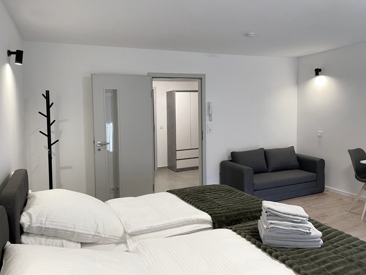 Welcome to dreamcation Apartments in Straubing Süd! Our design studio apartments have everything you need for a wonderful stay: → 45sqm in size → Queen-size beds (1.60x2.00m) → Fully equipped kitchenette → Terrace or balcony → NESPRESSO coffee machine → Smart TV → Washing machine → Own parking space (fee required) → High-speed WiFi → comfortable sofa bed for 2 additional guests