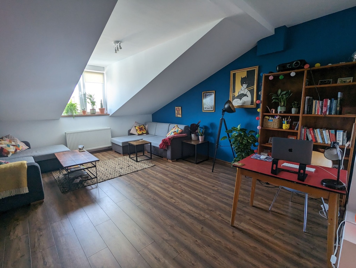 Cet appartement calme et charmant est situé dans une rue calme et verdoyante à côté des principales universités de la ville, à 10 minutes à pied de la vieille ville. Il est situé dans un bâtiment historique du début du 20e siècle. Il a été entièrement rénové en 2021, en conservant de nombreux éléments originaux lui donnant un aspect vintage. De nombreuses pièces ont une histoire familiale historique et certaines proviennent de jeunes designers polonais. Vous séjournerez dans une maison unique et aimée.
