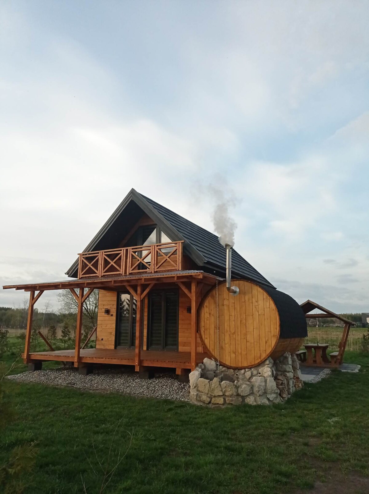 Nous proposons un chalet en bois de huit personnes situé à Łaszczówka, 22-600 Tomaszów Lubelski. Il y a deux chambres, une chambre d'amis et deux salles de bain. Il y a un salon avec une télévision et une kitchenette. La propriété dispose de deux climatiseurs, d'une connexion Wi-Fi, d'une terrasse et d'un balcon. À l'extérieur, il y a un kiosque, un barbecue, une balançoire et une pyramide énergétique. Un sauna et un jacuzzi sont disponibles moyennant des frais supplémentaires. Nous avons des expériences comme un mini billard/baby-foot/cymbergaj. Des vélos peuvent être loués. Bienvenue !