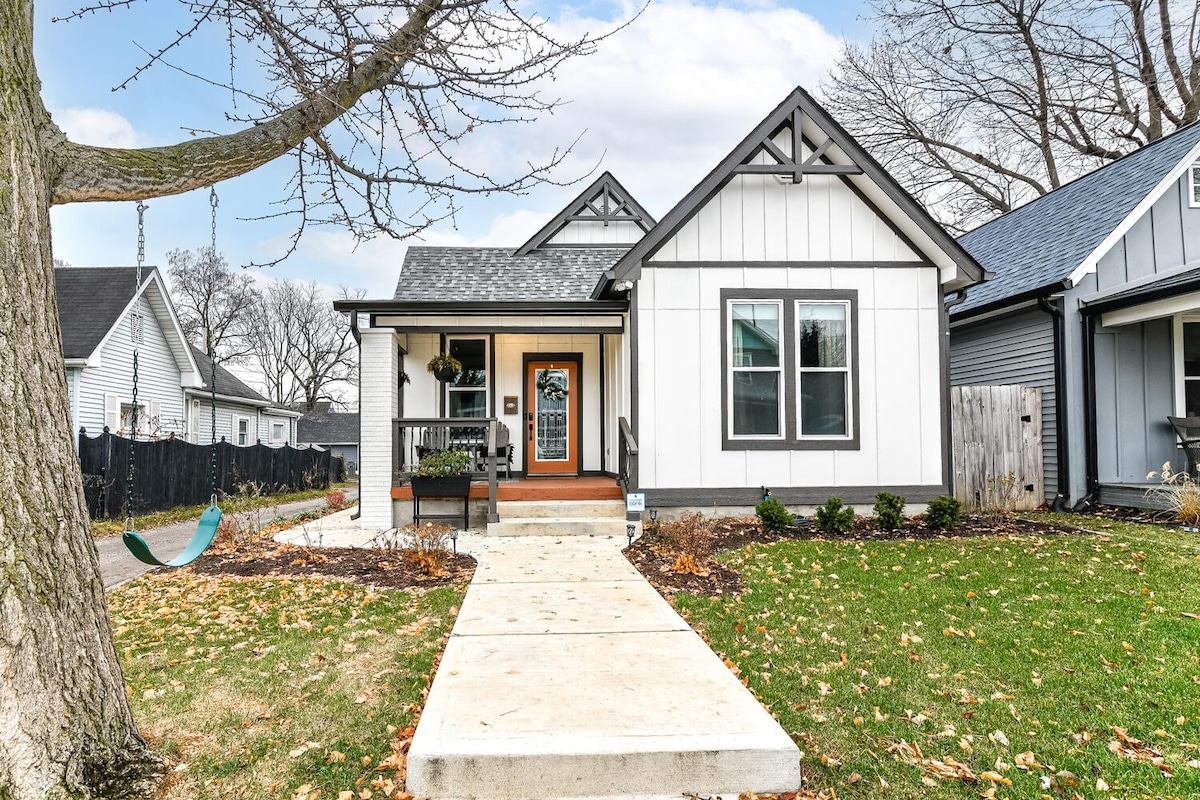 Bonjour, Fellow Traveler ! Bienvenue dans notre confortable chalet historique d'Indy, une retraite calme à quelques minutes du centre-ville. Profitez d'un café sur le porche, d'une cour clôturée pour les animaux de compagnie et d'un accès facile à Mass Ave, Bottleworks et au stade Lucas Oil. Soigneusement rénové pour le confort et le style tout en conservant son charme d'origine ! Cette maison pittoresque dispose d'une chambre king size avec dressing, d'une cuisine rénovée et équipée, d'une chambre/bureau secondaire modulable et d'un garage pour deux voitures. Parfait pour votre prochaine aventure à Indy !