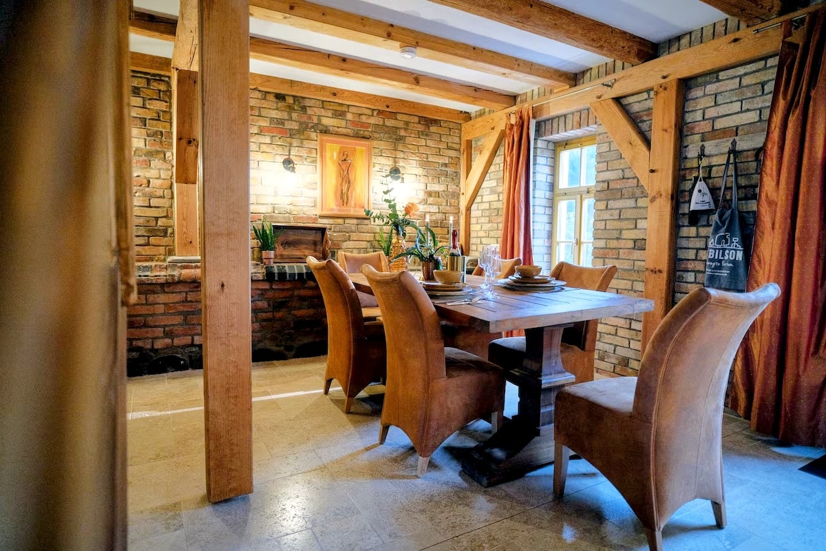 Détendez-vous dans ce logement spécial et calme. La maison à colombages construite en 1850 dans un endroit isolé offre un espace d'hébergement pouvant accueillir jusqu'à 15 personnes sur 2 étages. Un lieu de vacances pour toute la famille, les amis, pour des réunions de travail ou comme retraite. Le lac de Kritzow (3,5 km) invite à la baignade et à la détente. Dans la cour, il y a un sauna, de nombreux arbres, une grande balançoire, des bacs à sable, des foyers, un barbecue et une grande scène de théâtre.