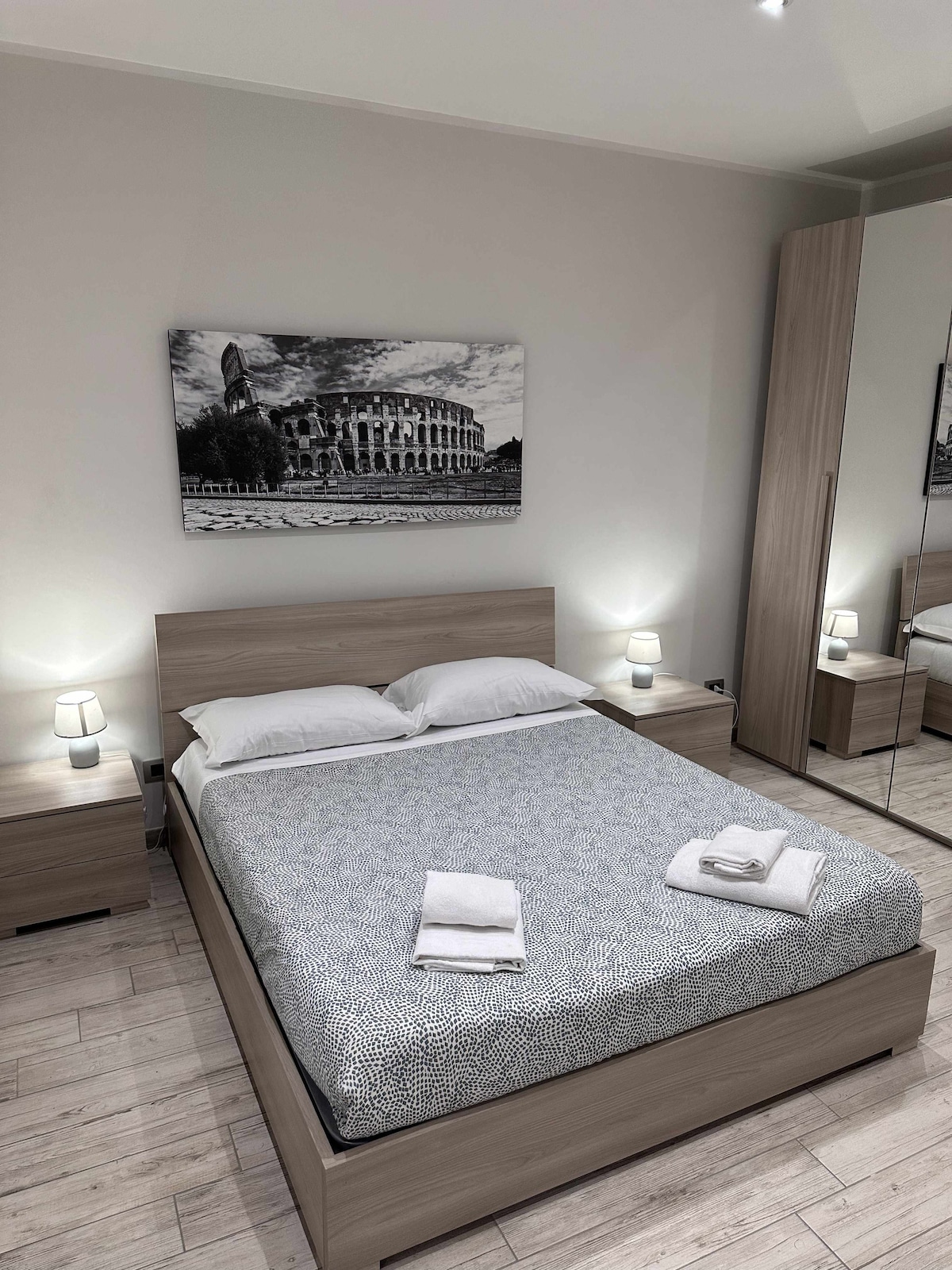 Appartement élégant et calme de 60 m² à 8 minutes à pied du métro et 5 du centre de congrès, 20 minutes de l'aéroport. Entrée, salle à manger, coin salon, kitchenette, chambre de 20 m², lit king-size, matelas à mémoire de forme, salle de bain, balcon et place de parking. Dans le salon, un canapé-lit de style français (140 cm). Élégamment rénové, climatisation, chauffage, grand placard dans la chambre, placard intégré dans le salon. Dans le centre historique de Rome en 20 minutes en métro.