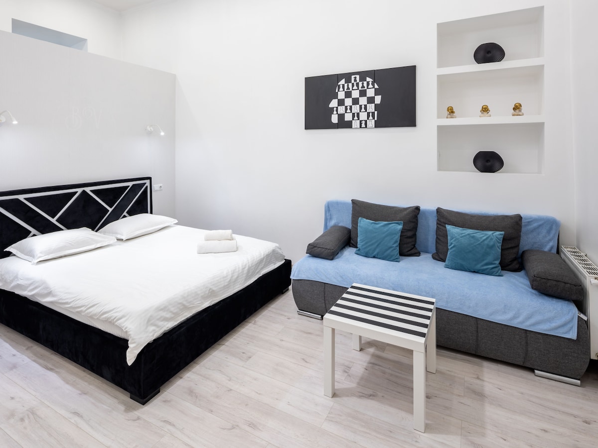 Стильний і сучасний, по-домашньому душевний Kostjukowski - це місце, де вас завжди чекають. Дизайнерські апартаменти в тихому районі в центральній частині міста. Одна спальня та кухня,простора тераса. Безкоштовний підземний паркінг, Wi-Fi, безкоштовний трансфер з\до залізничного вокзалу чи аеропорту, наповнення холодильнику, повний комплект брендованих косметичних засобів, продуктова корзинка.