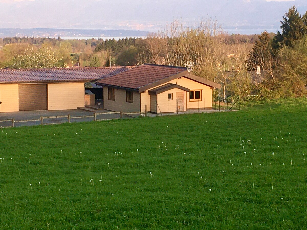 Sympathique chalet de 30 m2 pour 3 voyageurs (2 voyageurs pour les séjours aux mois) sur les hauteurs de Thonon les Bains, à 3kms du centre ville, magnifique vue sur lac Léman et côte Suisse, endroit calme à l'orée des bois, terrasse 15 m2, tout confort, parking gratuit sécurisé, portail électrique. Les voyageurs apprécient l'originalité et la décoration du chalet, son emplacement, sa vue et sa terrasse très agréable.