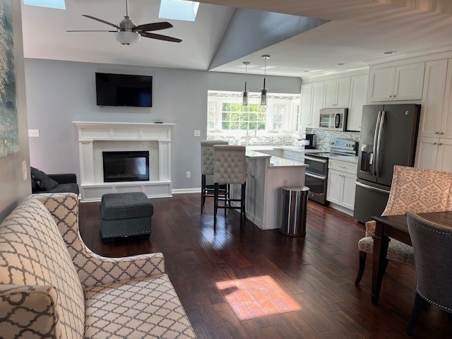 Privé, bien éclairé, l'entrée se trouve à l'arrière de la maison. L'espace est d'environ 600 pieds carrés. Il y a un foyer au gaz, une télévision HD 42" avec Netflix et Amazon Prime. La cuisine dispose d'une cafetière Keurig, d'un four à convection, d'une plaque de cuisson en verre inféré, d'un four à micro-ondes, d'un réfrigérateur/congélateur avec glaçons, d'un lave-linge/sèche-linge et d'une grande douche en marbre, avec des sols chauffants dans la salle de douche. Espace également équipé d'un purificateur d'air Medify avec filtre de qualité médicale H13 True Hepa.