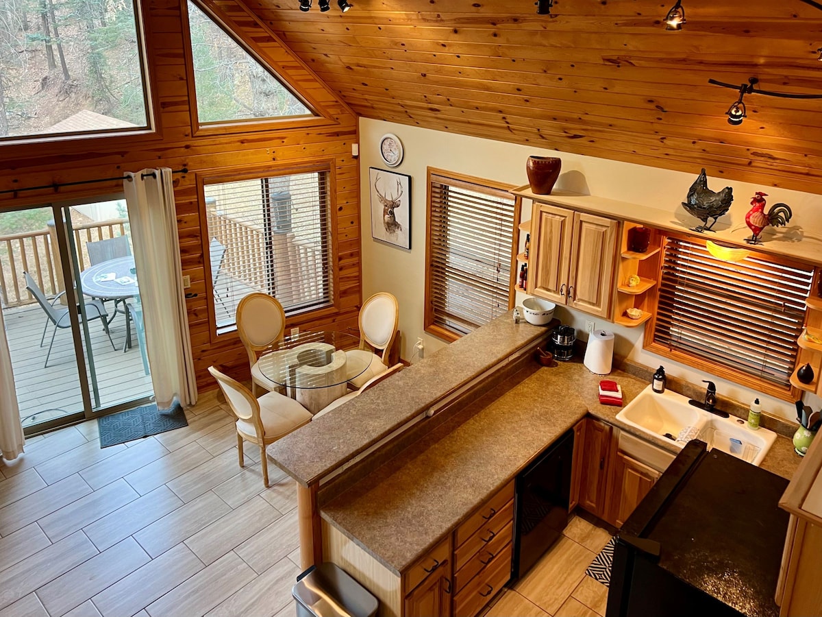 ** La neige est une possibilité pendant les mois d'hiver. Un véhicule 4x4 POURRAIT être nécessaire. ** Ce studio pittoresque est parfait pour une seule personne ou une petite famille qui a besoin de s'évader. Accès facile à la route principale et à quelques minutes en voiture de la ville. Un lit queen size dans une chambre semi-privée et un canapé convertible. Une seule salle d'eau avec douche. Accessible uniquement par des escaliers. Chauffage au propane pour réchauffer l'espace. Petite terrasse latérale pour l'entrée et une plus grande terrasse à l'arrière de la maison avec un barbecue. Cuisine équipée avec Keurig.