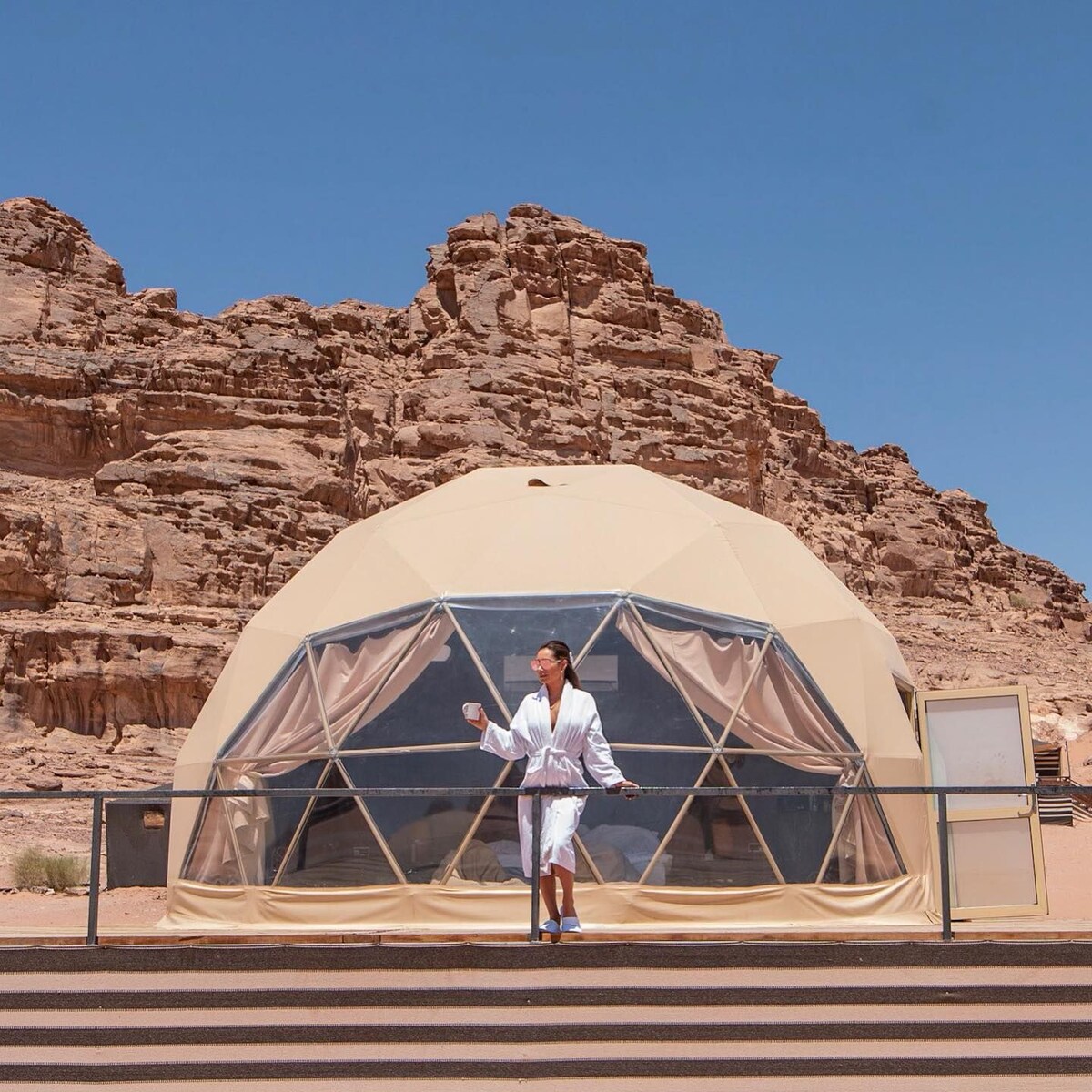 Le plus bel endroit du désert du Wadi Rum, niché au cœur de montagnes imposantes. Tentes à bulles de luxe dans le Wadi Rum. Toutes les activités disponibles : excursions en jeep, promenades à dos de chameau et excursions nocturnes d'observation des étoiles. Nous ne sommes pas les seuls à Wadi Rum, mais nous sommes les meilleurs. Tous les repas sont disponibles, préparés dans le style bédouin traditionnel sous le sable, avec une gamme complète de options végétariennes. Les plus belles tentes à bulles du Wadi Rum