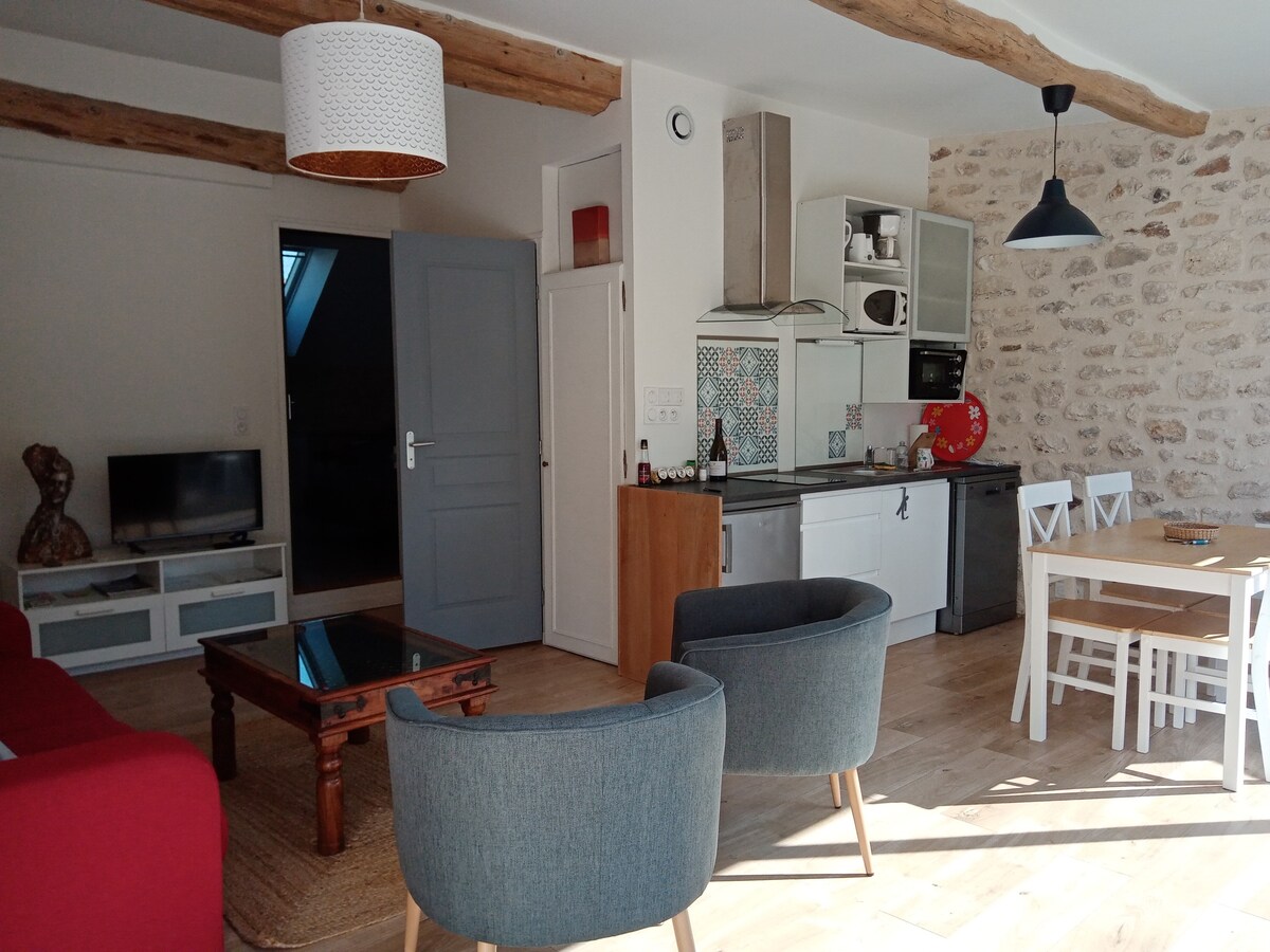 Au calme, entourée de jardins, la maison est à deux pas de la forêt et tout proche du centre-ville. La gare est à 15 mn à pied. Accès direct à l'Insead ou au Grand Parquet par les boulevards extérieurs. 60 m2 entièrement restaurés avec poutres et mur de pierre pour un grand séjour, coin cuisine et repas. A l'étage, une grande chambre lumineuse et confortable ainsi qu'une salle de bain au design contemporain. Accès WIFI fibre privative. Le petit plus : un jardinet agréable, orienté ouest...