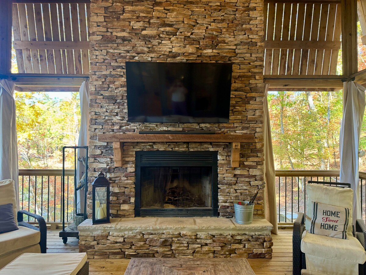 Détendez-vous dans ce logement unique et tranquille. Une cabane rustique avec des équipements modernes. Situé dans une ferme privée, juste à l'extérieur d'Auburn. 3 chambres et 1 salle de bain. Douche extérieure supplémentaire. 2 lits Queen Size et 2 lits Full Size. Internet haut débit. Cheminée à bois intérieure avec foyer extérieur et jacuzzi. Beau ruisseau alimenté par une source avec le son de l'eau courante qui peut être entendu depuis le porche enveloppant. Entrée fermée avec plus d'un mile de sentiers. À environ 10 minutes du campus d'Auburn.