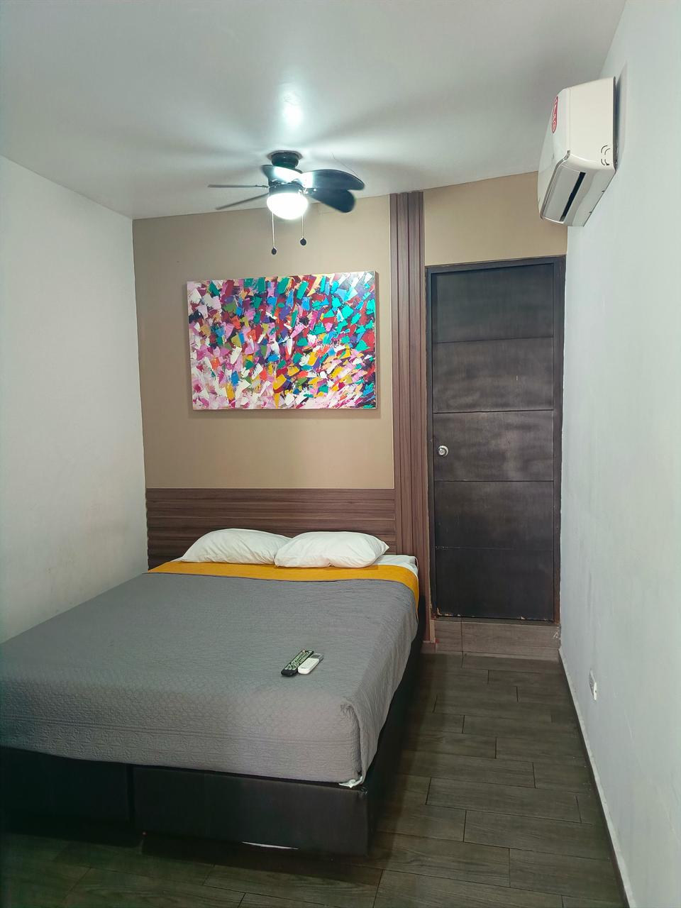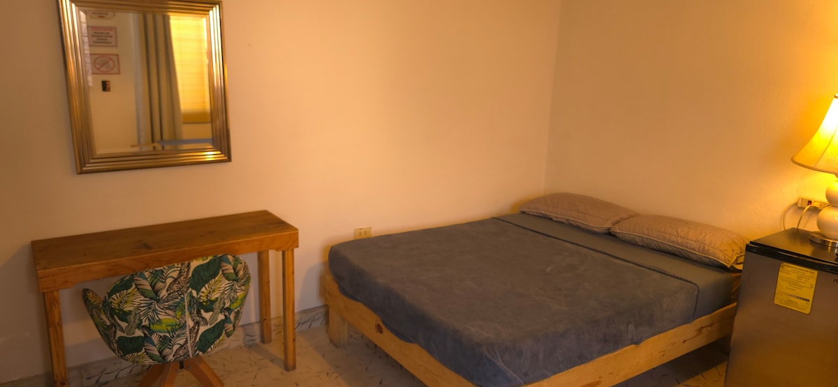 Chambre avec tout le confort dans un espace de 16m2, elle dispose d'une salle de bain privée, d'un bureau, de la climatisation, d'une télévision 42 pouces avec accès par câble, de YouTube et de Netflix. Il dispose d'un restaurant et offre une courtoisie de pain sucré et de café le matin, pendant votre séjour. Appels locaux et cellulaires gratuits. Connexion Wi-Fi haut débit. Service de nettoyage quotidien dans la chambre inclus. Bagagerie. Il y aura du personnel pour vous guider 24 heures par jour.