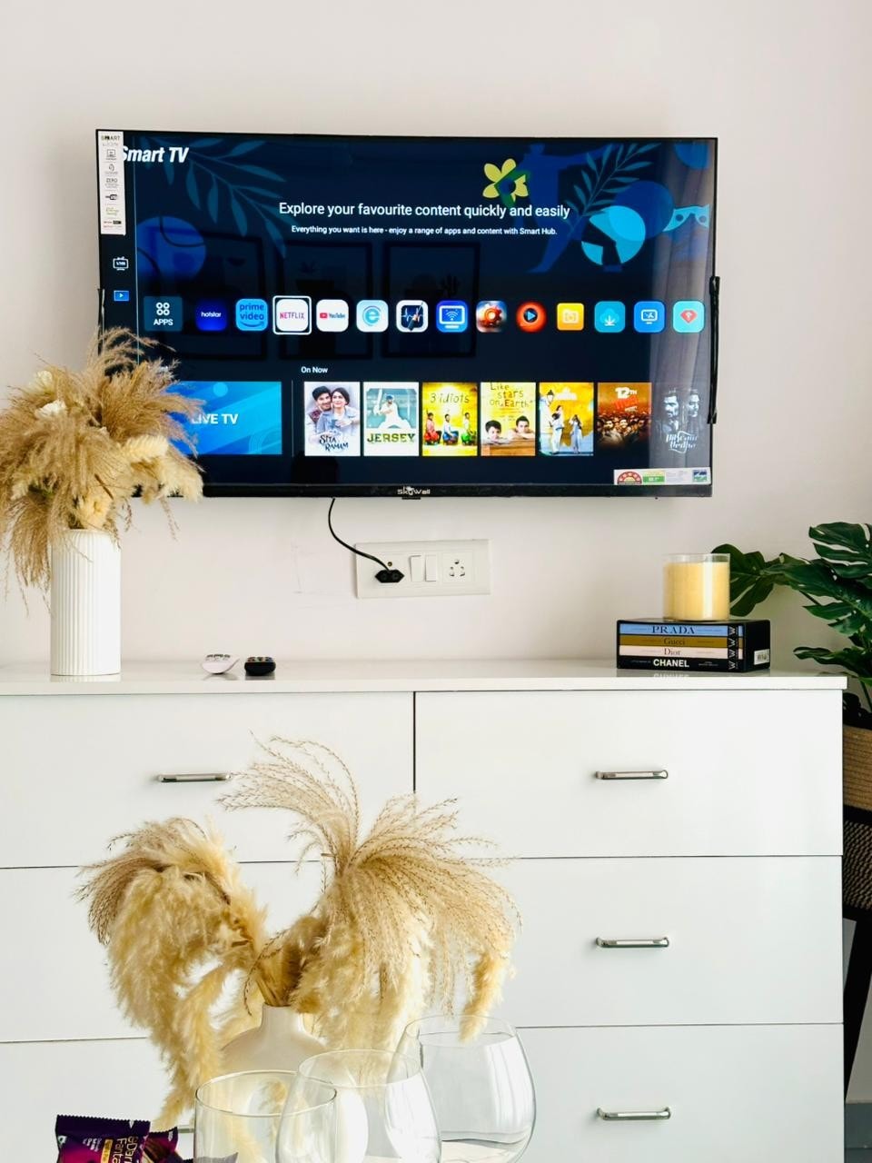 Escape to this stylish 1BHK, just minutes from Versova Beach! The air-conditioned space features a comfy bed, a fully equipped kitchen (fridge, microwave, essentials), and a cozy living area with a smart TV. Enjoy warm lighting (fairy lights, soft lamps) for a relaxing vibe, plus a washing machine and 24/7 hot water. Steps from the beach, cafes, and local markets, it’s perfect for couples or small families. High-speed Wi-Fi and fresh linens included for a seamless stay!