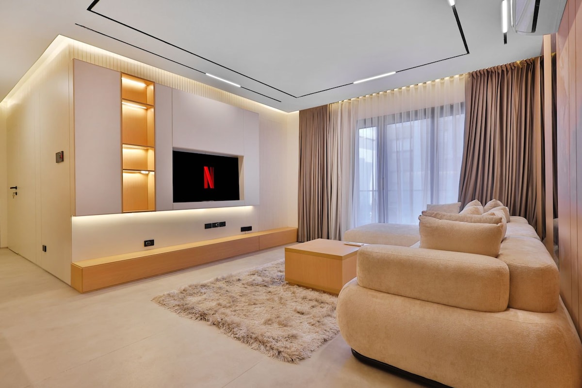 Découvrez le luxe dans cet appartement de 3 chambres dans un complexe sécurisé 24h/24 et 7j/7 au Nouveau Caire, à 25 minutes de l'aéroport. Comprend une chambre principale, une télévision intelligente, une connexion Wi-Fi haut débit et un mobilier haut de gamme avec un ensemble de salle à manger de luxe. Profitez de piscines partagées, d'espaces verts et de belles vues. Proche des meilleurs centres commerciaux, cinémas, restaurants et tout ce dont vous avez besoin. Parfait pour les familles ou les séjours d'affaires, réservez votre séjour dès maintenant