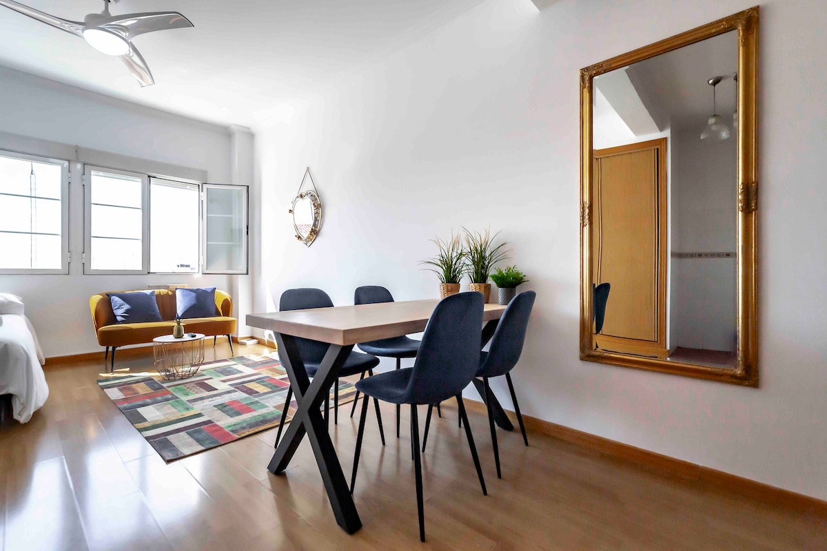 This elegant apartment features functional, well-designed spaces to make your stay as comfortable as possible. It comes with individual heating, adjustable air conditioning, Smart TV, high-speed Wi-Fi, and a fully equipped kitchen. Located in the heart of La Latina — one of Madrid’s most vibrant and authentic neighborhoods — surrounded by historic markets, theaters, art galleries, charming cafés, and a thriving cultural scene.