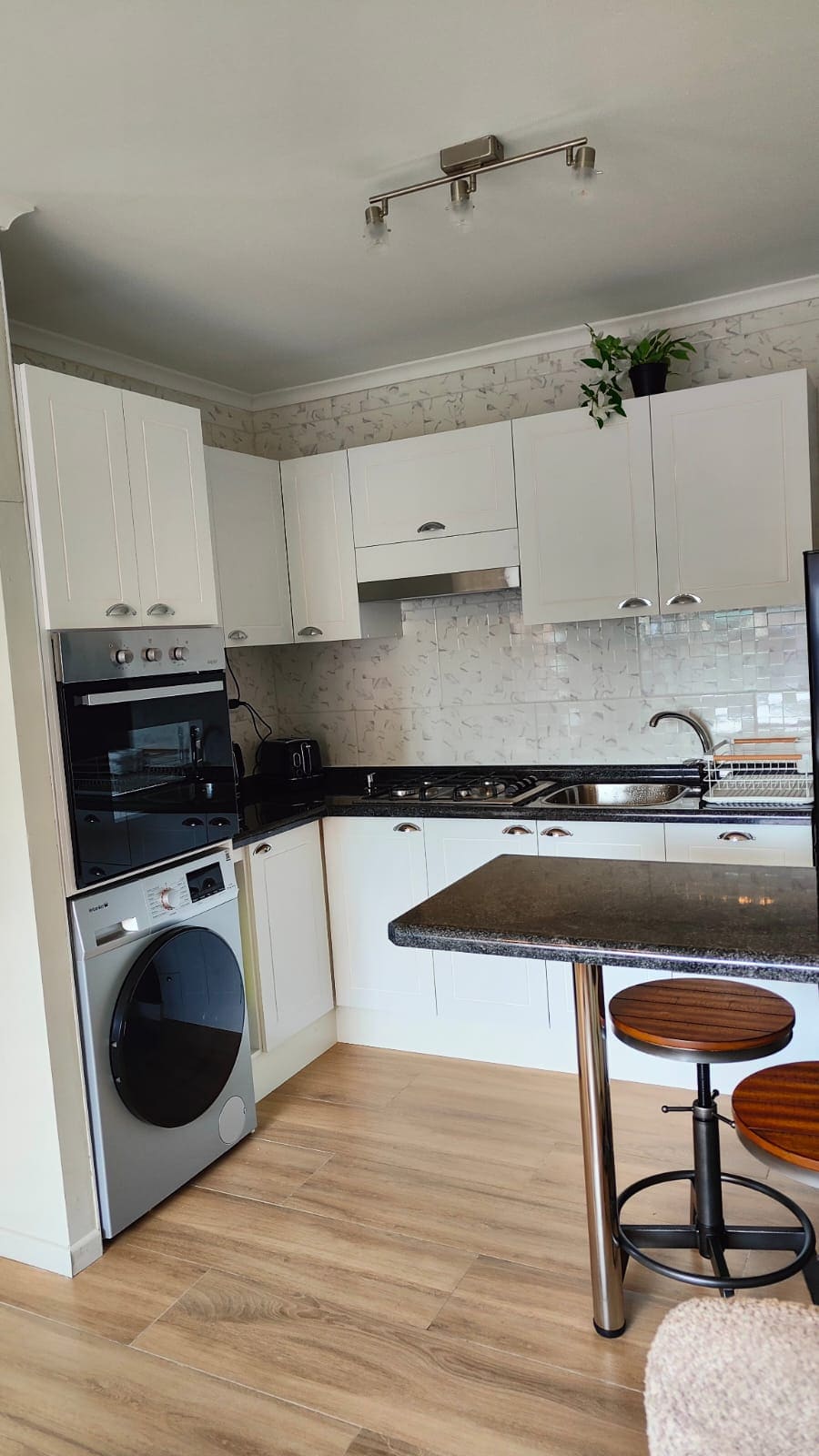 Appartement entièrement neuf, avec un style de décoration moderne, qui donne à nos clients une véritable sensation d'harmonie et de pureté dans l'environnement. Il se compose d'une chambre avec salle de bain en suite et d'un lit deux places très confortable, dans une deuxième chambre, il a tout ce dont vous avez besoin pour votre séjour, que ce soit une machine à laver, un réfrigérateur, une cuisine, etc. En outre, nous avons un lit futon d'une place et demie.