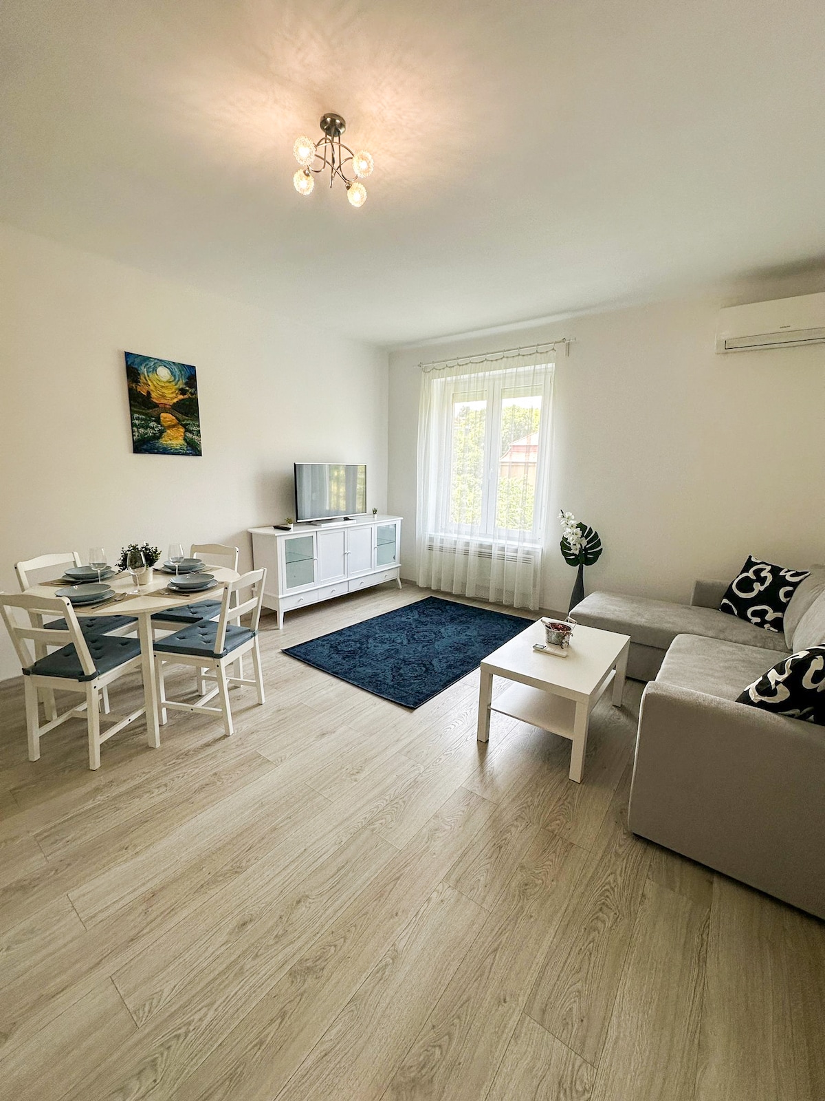 Bel appartement moderne, lumineux et nouvellement meublé avec balcon dans le 13e arrondissement à proximité du Danube ! PARKING GRATUIT dans le garage. Endroit charmant et paisible, mais avec un accès rapide au centre-ville (place Deák à 12 min en métro/sans transfert). La station de métro est à 150 m de l'appartement ! Cadeaux gratuits pour nos voyageurs ! Il peut accueillir 4 personnes. L'appartement climatisé dispose d'une chambre pour deux (lit King Size - 180x200), d'un salon spacieux avec un canapé convertible pour deux (150x200).