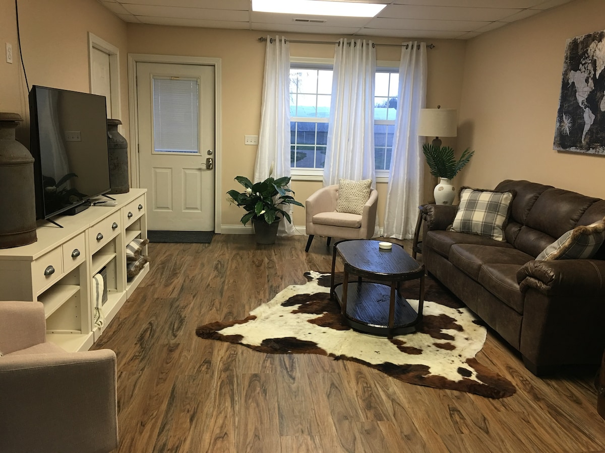 Simplifiez-vous la vie dans cet appartement paisible et central de 2 chambres et 1 salle de bain au deuxième étage. Entièrement meublé, confortable et situé en plein centre de Leitchfield. Également situé entre Rough River (10 minutes) et le lac Nolin (22 minutes) avec un espace pour le stationnement de la remorque de bateau. Avec des restaurants et des épiceries à moins de 5 minutes, cet appartement est également parfait pour des séjours prolongés. Les deux chambres sont meublées avec des lits Queen Size.