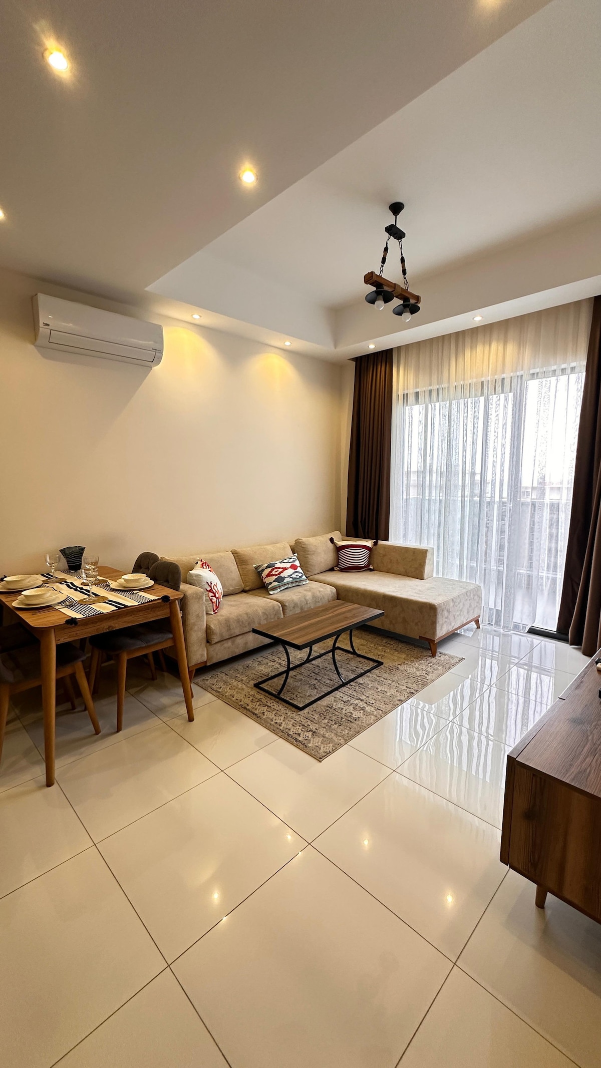 Big 1+1. best part of Alanya (damlataş). comfortable for 5 person living. 2 min walking to kleopatra beach, parks, market, teleferic. It is just near city and beach. also full with peace it has private garden.silence street. ıt has big living room and big kitchen. 2 single bed in livingroom.2 air condition.. there is everything in flat for long staying too. Android tv (youtube, netflix,... free entrance to hotel pool,bar,..hotel is just near flat. you can use hotel facilaties as hotel guest.