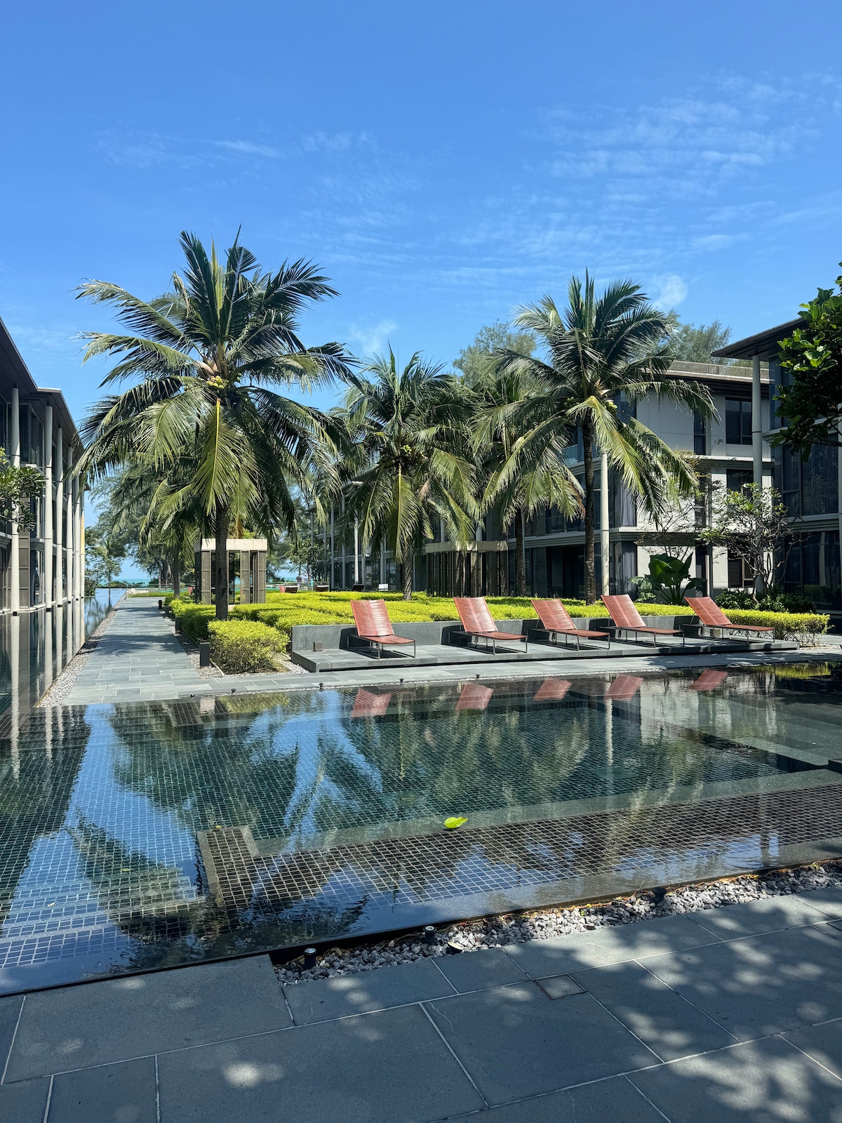 Bienvenue dans notre appartement au 5e étage avec un balcon donnant sur la piscine, le jardin et sur le côté la mer. Notre appartement paisible de deux chambres et deux salles de bains peut accueillir jusqu'à 5 personnes (la 5e personne étant un enfant dormant sur un canapé-lit/berceau) pour les loisirs, les longs séjours ou le travail à distance. L'appartement fait partie du luxueux complexe de copropriété Baan Mai Khao de Sansiri avec 7 piscines, des salons, une salle de sport et un emplacement directement sur la plage. Le prix comprend l'électricité, l'eau du robinet et le Wi-Fi.