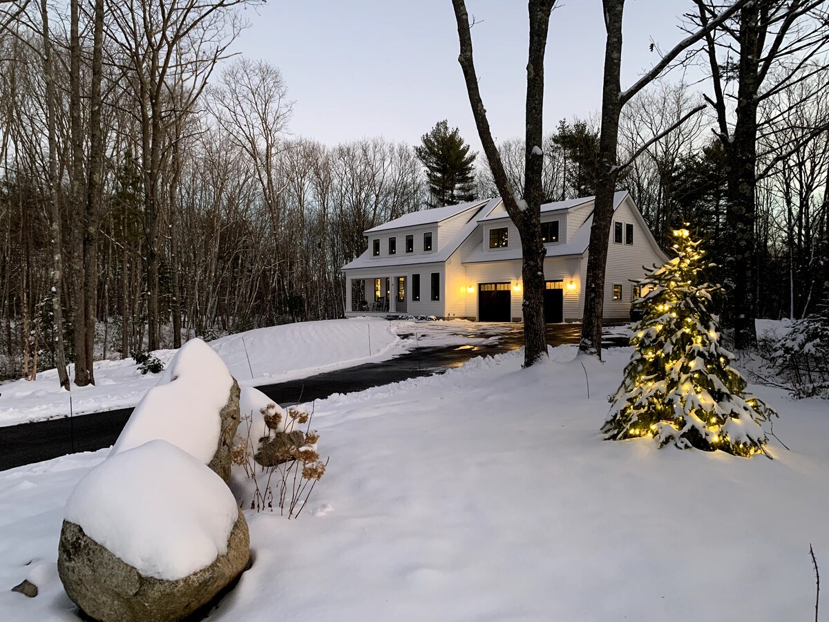 Notre chalet moderne récemment construit offre une retraite isolée et relaxante à Union, dans le Maine. Avec les hauts plafonds, le plan d'étage ouvert et de nombreuses fenêtres, les voyageurs sont entourés de lumière naturelle et de vues sur la forêt. La cabane dispose d'une cuisine entièrement équipée, d'une cheminée confortable et d'un barbecue extérieur et d'un foyer. Des sentiers pédestres relient le chalet à notre ferme voisine, où vous pourrez rendre visite à nos chevaux, ânes, chèvres, poules et canards. Nous sommes à seulement 25 minutes des commerces, restaurants et plages du Midcoast.