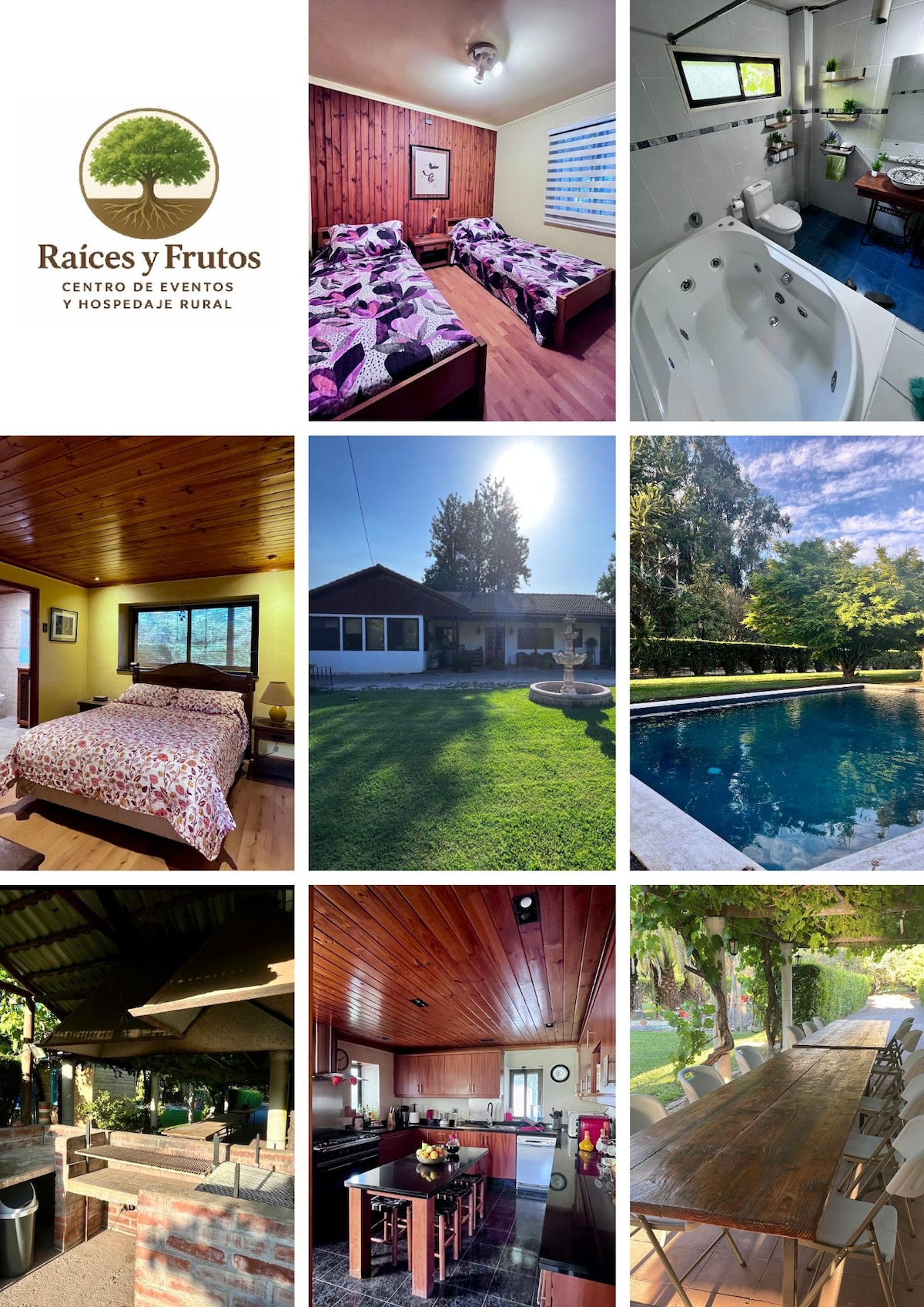 Charmante parcelle avec piscine exclusive, arbres et jardins. C'est une maison complète dans un espace privé idéal pour se détendre, profiter en famille, travailler à distance au milieu de la nature. À 40 minutes de Santiago par l'autoroute, vous arrivez à cette maison de 3 chambres, 2 salles de bains. Une pièce principale avec salle de bain en suite et espace de travail. Entourée d'une petite forêt, d'arbres fruitiers et d'un verger. C'est un espace libre pour regarder le ciel étoilé.