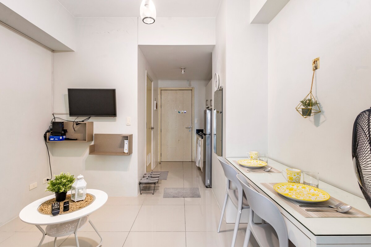 *Mobilier mis à jour : canapé confortable qui se transforme facilement en lit double confortable. 🛋️ Bienvenue à The Cozy Metropolis ! ✨ Niché au cœur de Makati, notre appartement offre le mélange parfait de commodité urbaine et de confort douillet. Entrez et vous serez accueilli par une atmosphère chaleureuse et confortable avec un décor élégant mais chaleureux, des meubles moelleux et un éclairage doux. C'est la retraite idéale pour se détendre après une journée bien remplie en ville.
