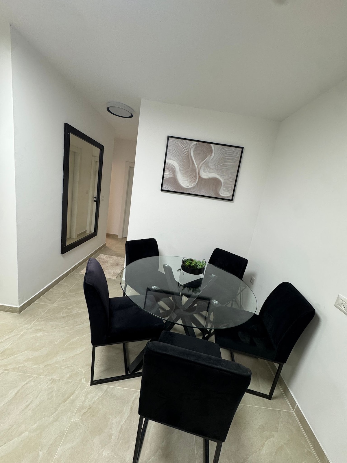 Penthouse spacieux dans un nouveau bâtiment dans le centre de Mitzpe Ramon. 2 chambres. 2 grands balcons. Il y a un parking (pas ombragé). Cuisine entièrement équipée (sans Tami4). Un lit double dans une chambre et un canapé-lit double dans une chambre sûre. Il y a un climatiseur dans le salon et dans la chambre. Dans la chambre sûre, il y a un ventilateur/ radiateur. À environ 15 minutes à pied du quartier des parfums et du centre commercial. L'emplacement exact sera fourni après la confirmation de la réservation.