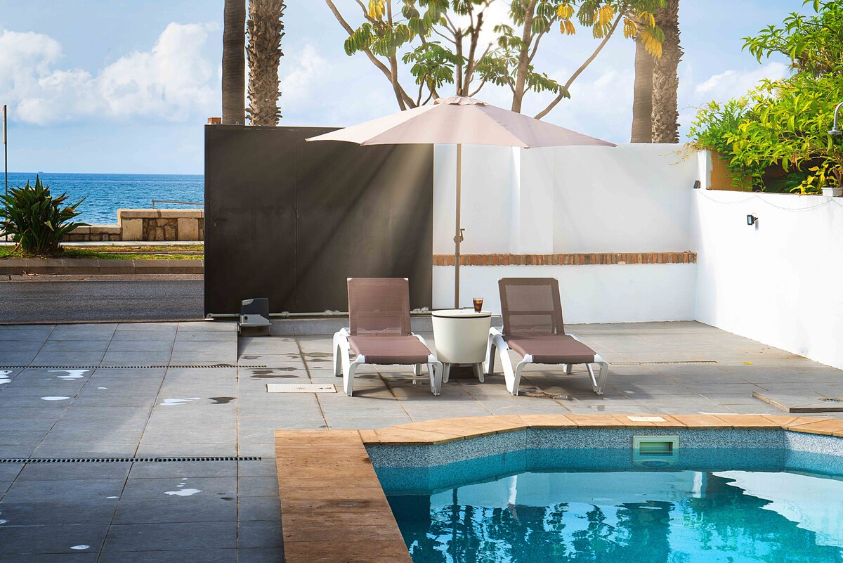Beau loft tout neuf, idéal pour les couples, avec une splendide piscine privée partagée avec la propriétaire de la maison. Un espace avec un lit double, un canapé deux places, une table à manger, une télévision et la climatisation ; Internet haut débit ; cuisine avec vitro à induction, réfrigérateur, micro-ondes, équipée ; grande salle de bains privée avec douche avec paroi ; dans une enclave privilégiée face à la mer, en plein Paseo Marítimo.
