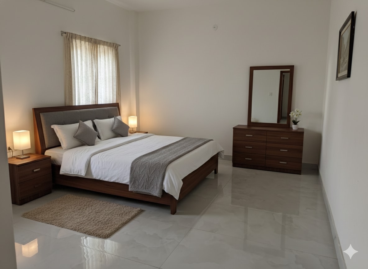 Comfortable and well-maintained 2BHK apartment ideal for families and working professionals. Includes two spacious bedrooms, a living area, kitchen, and clean bathrooms. Peaceful surroundings with easy access to markets and transport. A perfect stay for short or long visits.